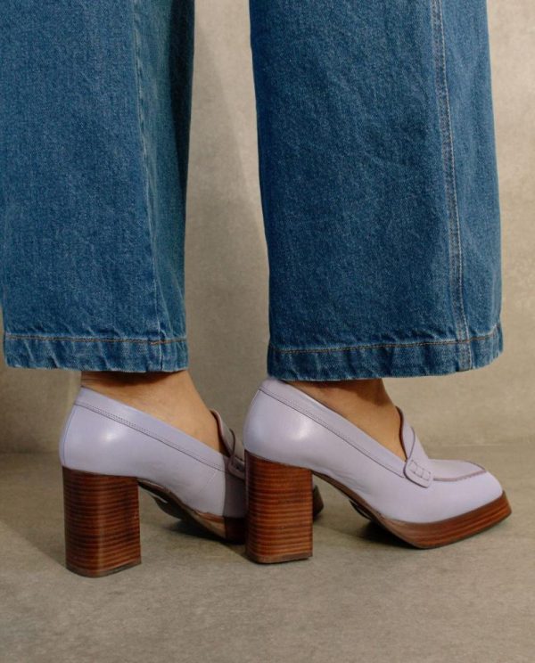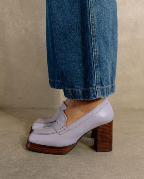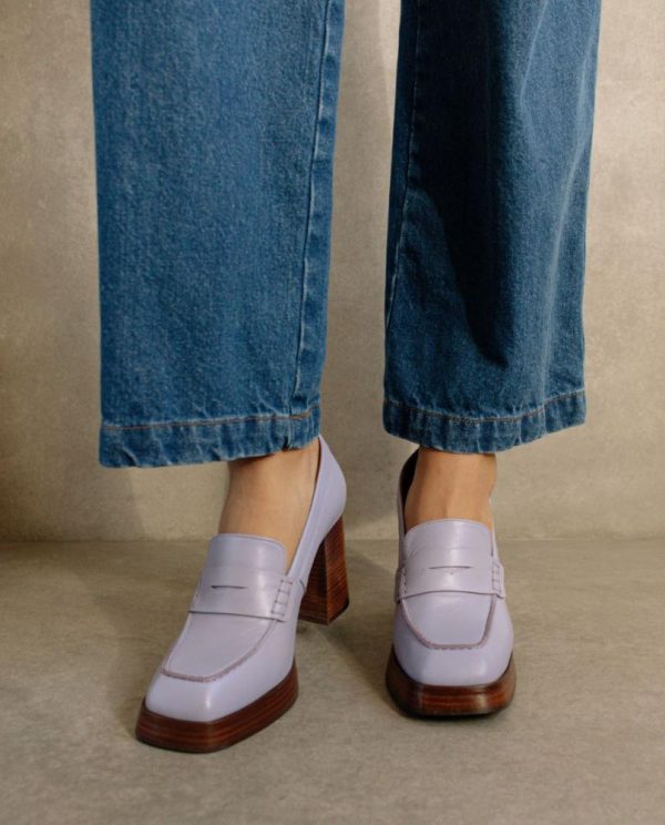 Featuring a timeless vintage-inspired design that works year-round, these elevated loafers will transform your professional wardrobe. The classic penny silhouette is crafted from premium purple leather and built on a sturdy wooden heel, complemented by a supportive front platform. These slip-on beauties are your go-to choice for busy days when you need effortless style that keeps up with your schedule.
