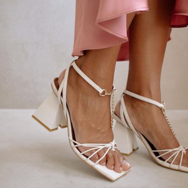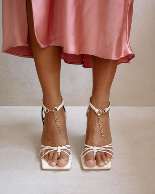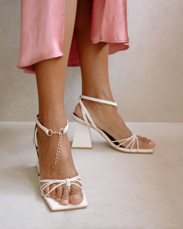 Make a statement with the Cactus sandals, designed to showcase your style with confidence. These beautifully crafted sandals feature a sophisticated knotted design with an adjustable gold chain ankle strap for the perfect fit. The sculptural A-shaped block heel and elegant squared toe create a premium look that elevates any outfit. The versatile white colorway ensures these sandals pair effortlessly with your entire wardrobe.