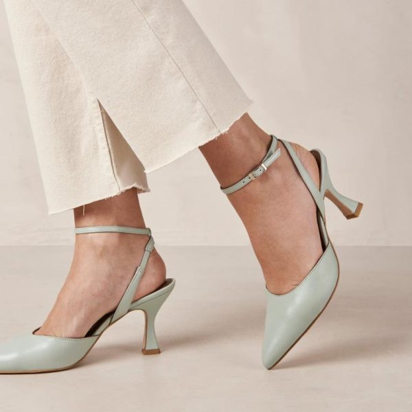 Experience the perfect blend of sophistication and comfort with these stunning Cinderella slingback pumps. Designed with a sleek, modern silhouette, these timeless heels elevate any outfit effortlessly. Crafted from premium green leather, they feature a flattering 8cm heel with a subtle flare for stability and an adjustable ankle strap for customized comfort. Step into these forever heels and transform your favorite dresses into show-stopping ensembles.