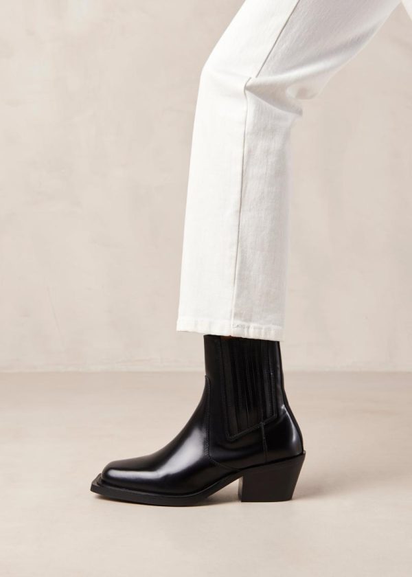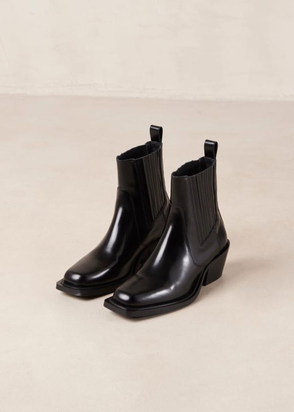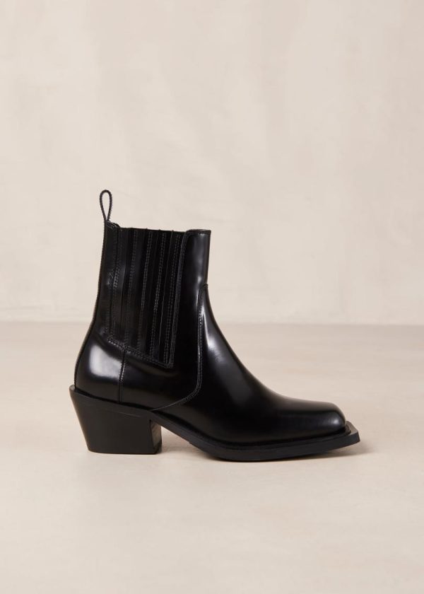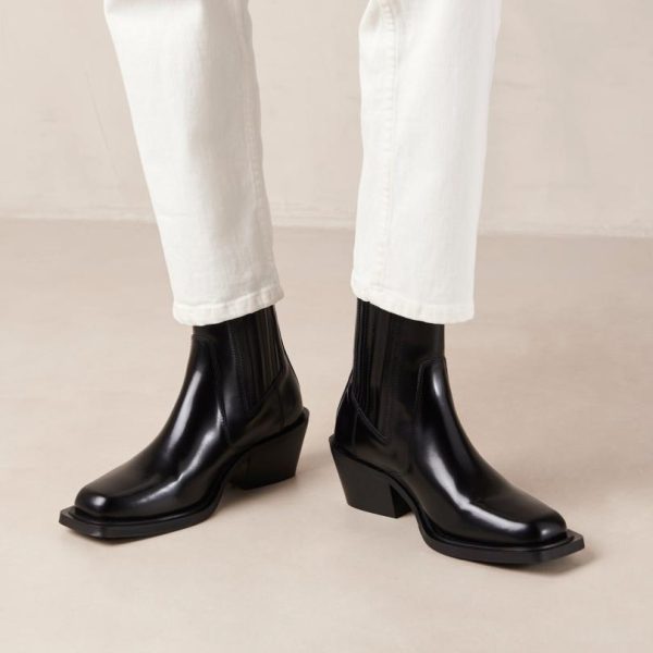 ALOHAS Denver Black Leather Western Ankle Boots for Women