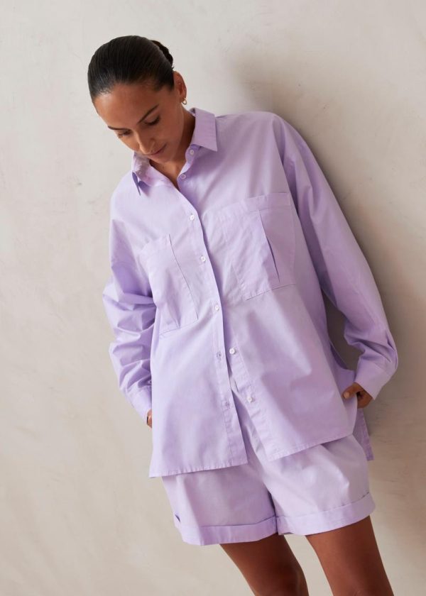 Elevate your everyday essentials with this stunning statement piece. Crafted in a vibrant purple hue, the Domi shirt features premium organic cotton construction with a contemporary oversized silhouette, pointed collar details, and functional chest pockets. The perfect upgrade from your basic button-down collection.
