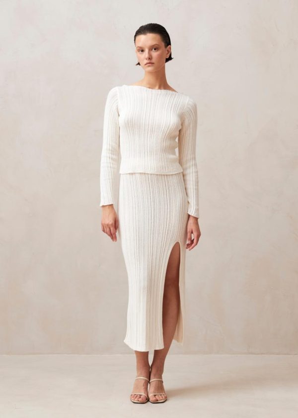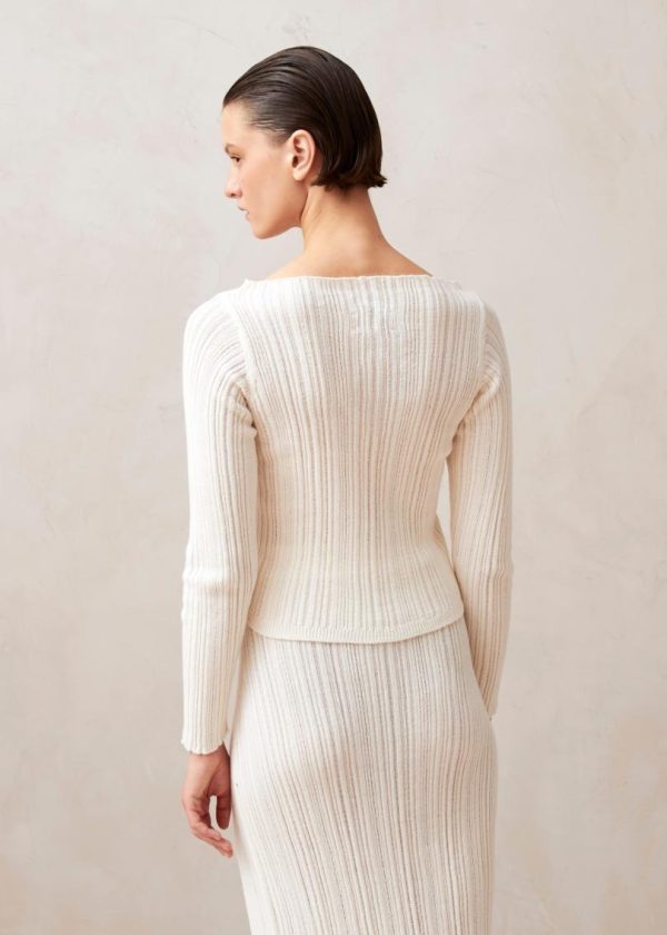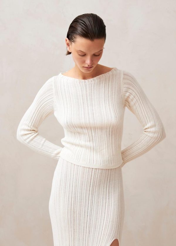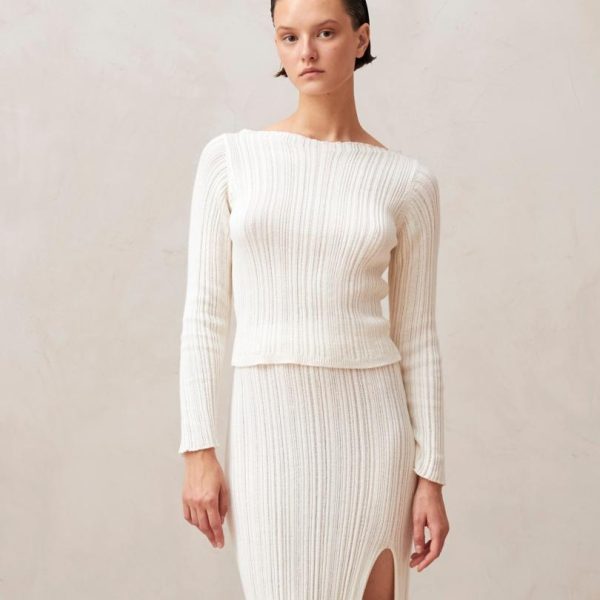 Experience ultimate comfort in our premium knitwear. The Elise white top features soft ribbed cotton construction that contours beautifully to your figure while providing gentle shaping where you need it most. The sophisticated boat neckline elegantly frames your collarbone for a feminine yet polished look. Perfectly designed to pair with our Zoe skirt for a coordinated ensemble, yet versatile enough to elevate your favorite jeans for everyday style