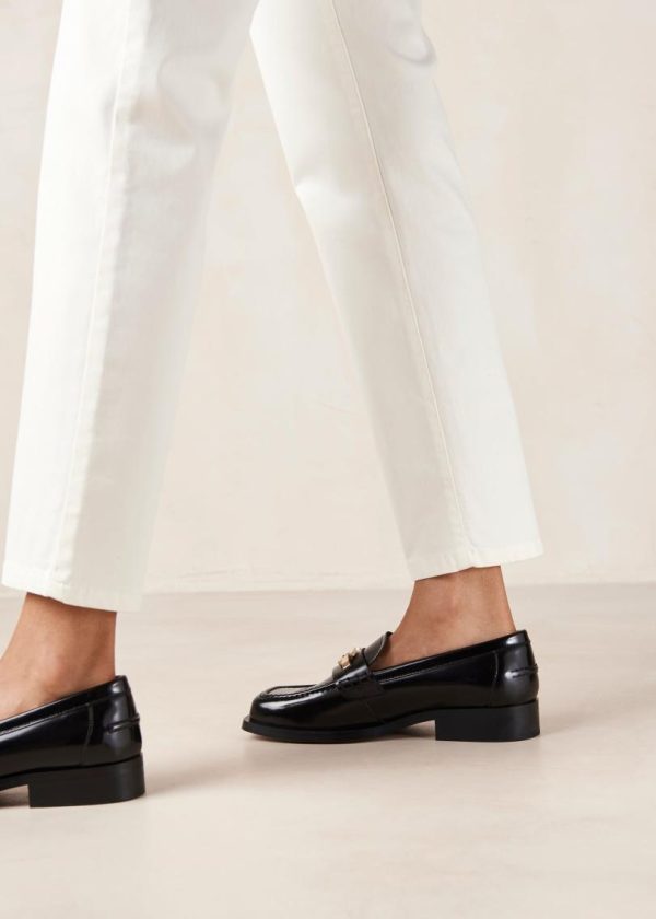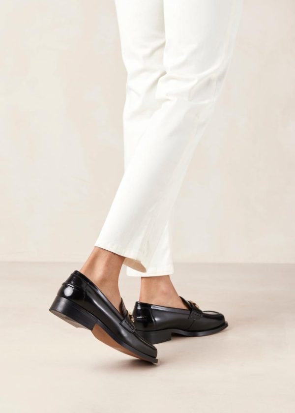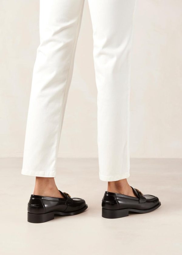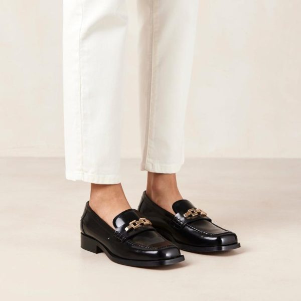 Meet the Elliot loafer – your new go-to footwear that masterfully blends menswear-inspired elegance with contemporary feminine style. Featuring a sharp squared toe and subtle heel lift, these premium loafers showcase exquisite black leather uppers with artisanal exposed stitching and luxurious gold-tone hardware. Perfectly versatile for both professional settings and weekend adventures, these shoes transition seamlessly from boardroom meetings to brunch dates with effortless sophistication.