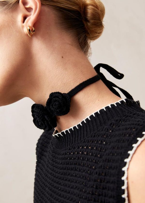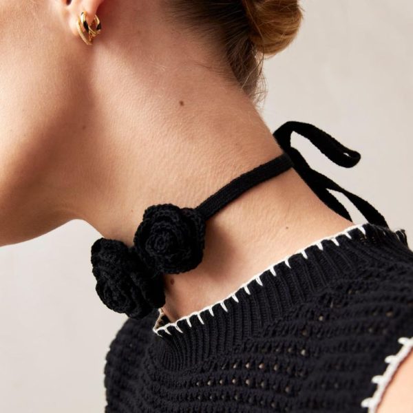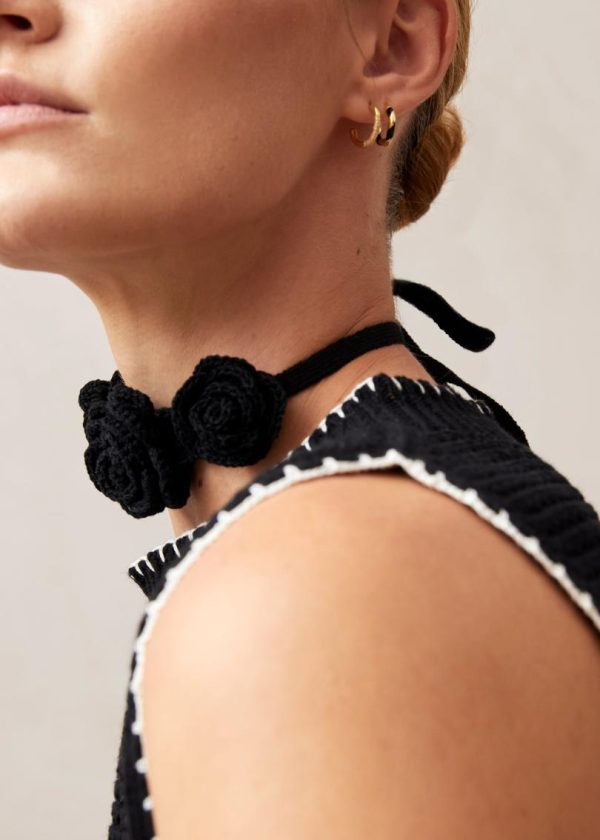 This isn’t your traditional crochet piece. Expertly handknitted from premium black cotton, the Fleur choker features stunning 3D floral blooms that create a dimensional statement. This contemporary take on artisanal craftsmanship delivers a captivating accessory perfect for daytime outings and romantic evening occasions.