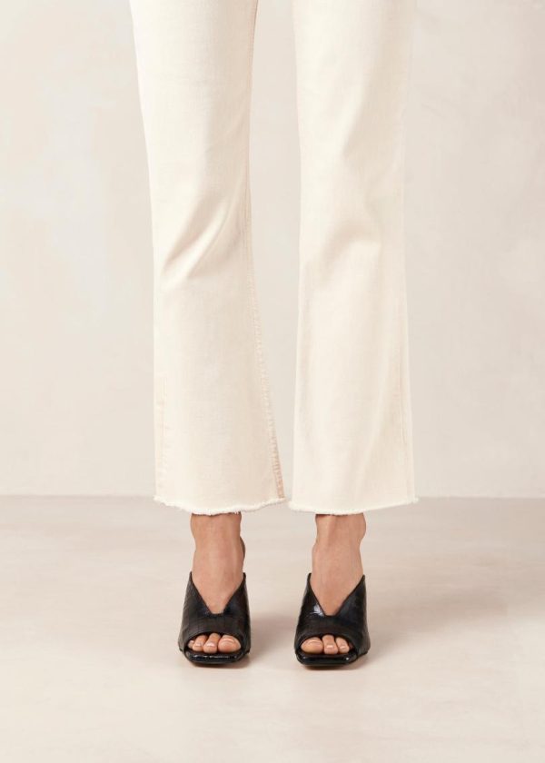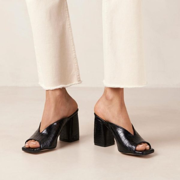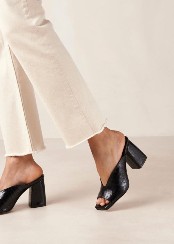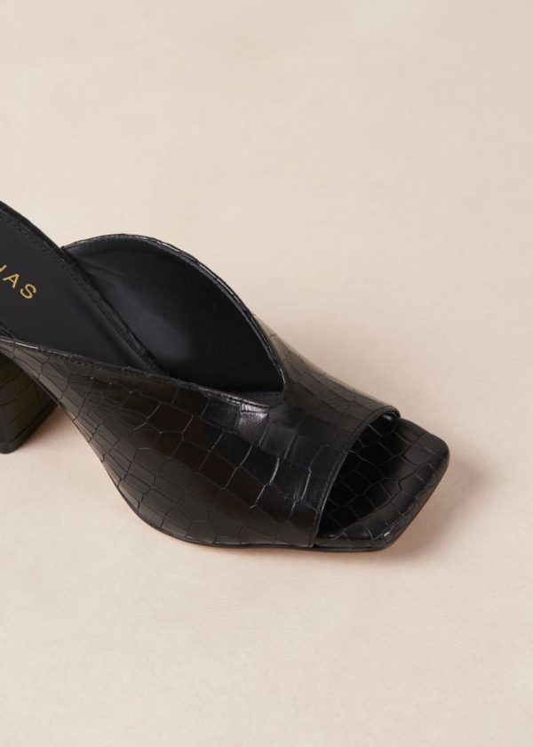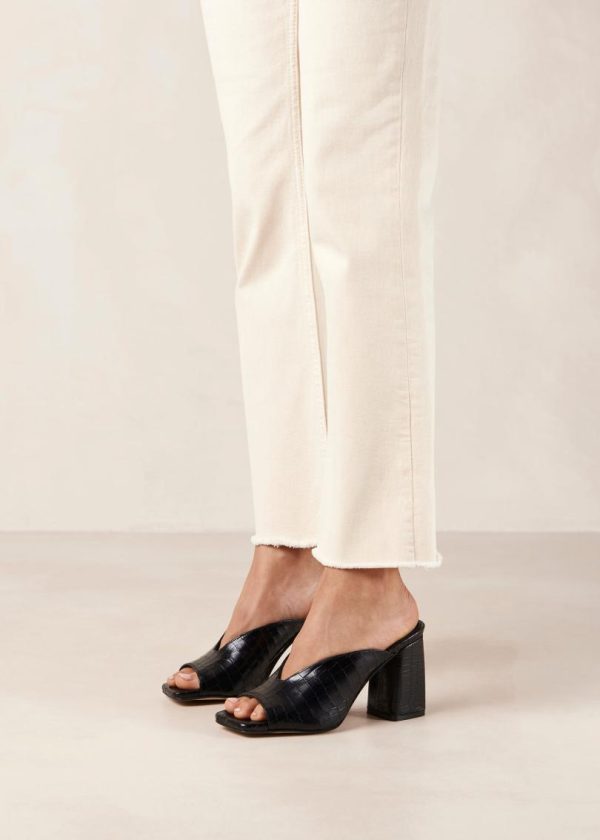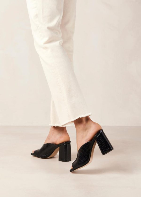 Featuring sharp angular vamps and architectural detailing, our Frenchie mules make a powerful style statement with every step. Crafted from premium black embossed leather and elevated by a substantial mid-height heel that ensures confident, comfortable wear. Embrace their vintage-inspired charm by pairing with denim combinations or sharp tailored pieces.