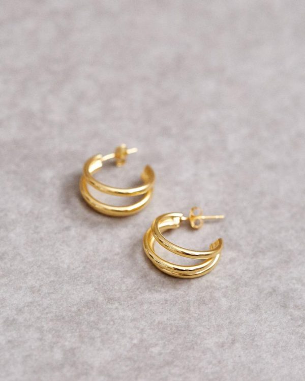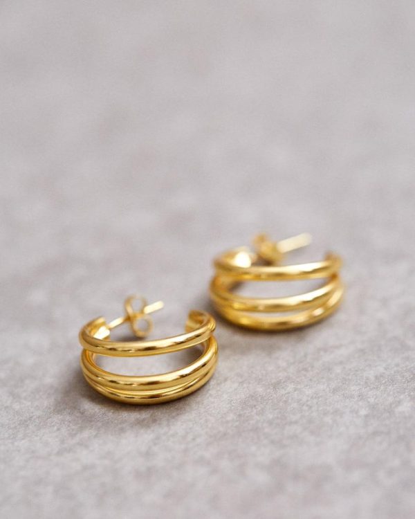 Experience the perfect blend of elegance and versatility with our stunning triple hoop design. Expertly crafted from premium gold plated silver, the Trilogy collection features three beautifully connected loops that create the illusion of multiple earrings with just a single piercing. These statement earrings stand out magnificently on their own or pair effortlessly with your favorite studs for a layered look that transitions seamlessly from day to night.