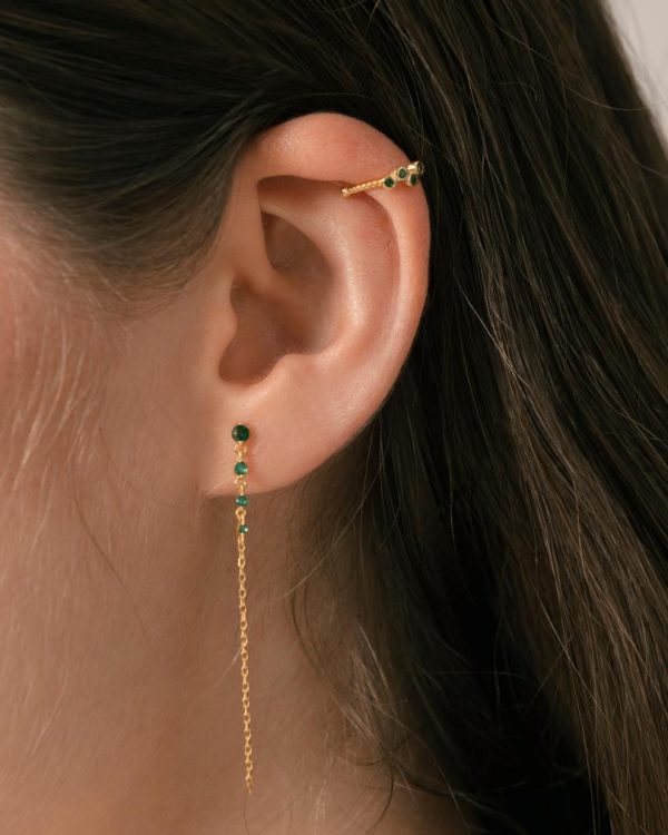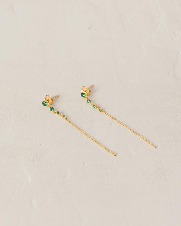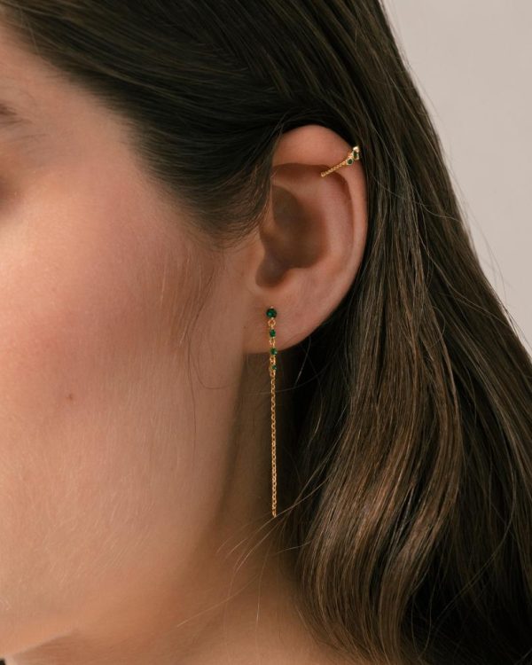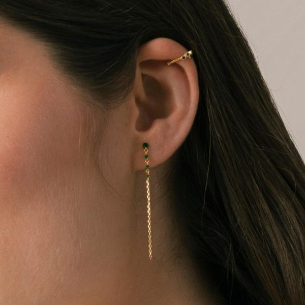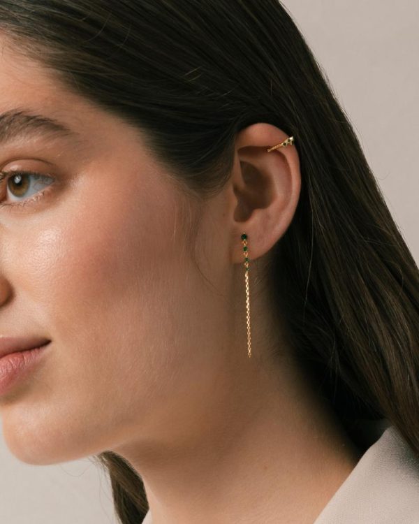 Crafted from premium gold plated sterling silver, the Guama earrings deliver sophisticated style with effortless movement. These lightweight chain drops feature brilliant green gemstones that catch the light beautifully with every motion. Style them as a matching set or mix with your favorite crystal studs for a personalized, eye-catching look.