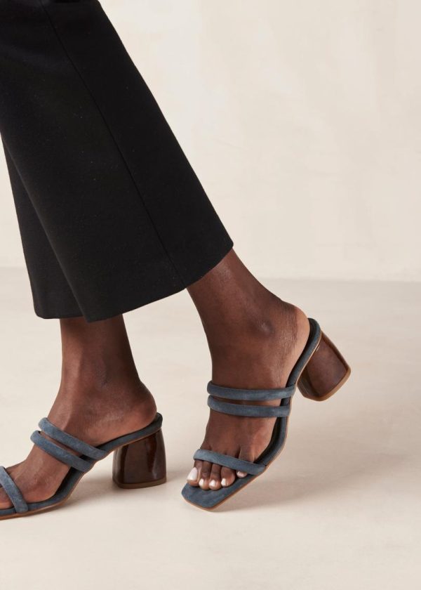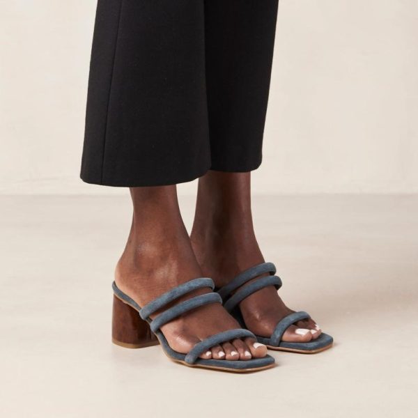 Sophisticated gray suede mules with elegant thin-strap design