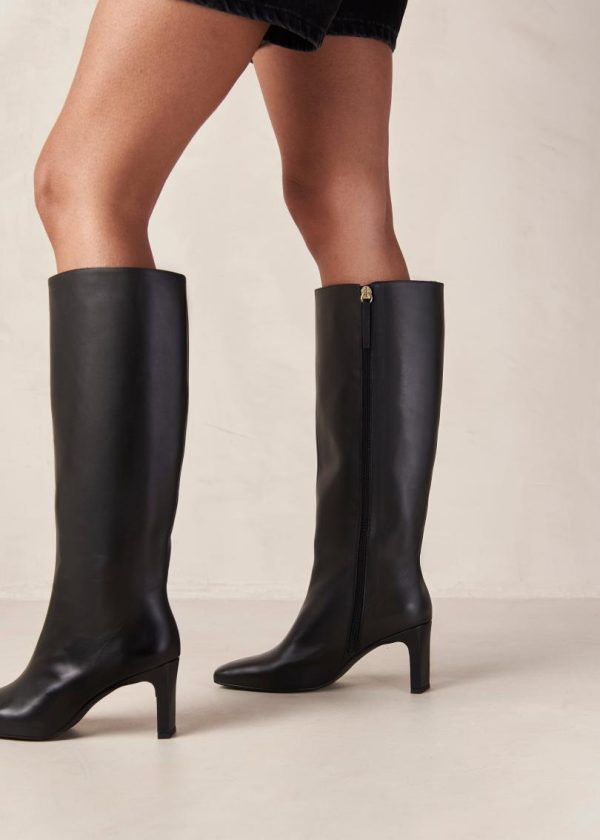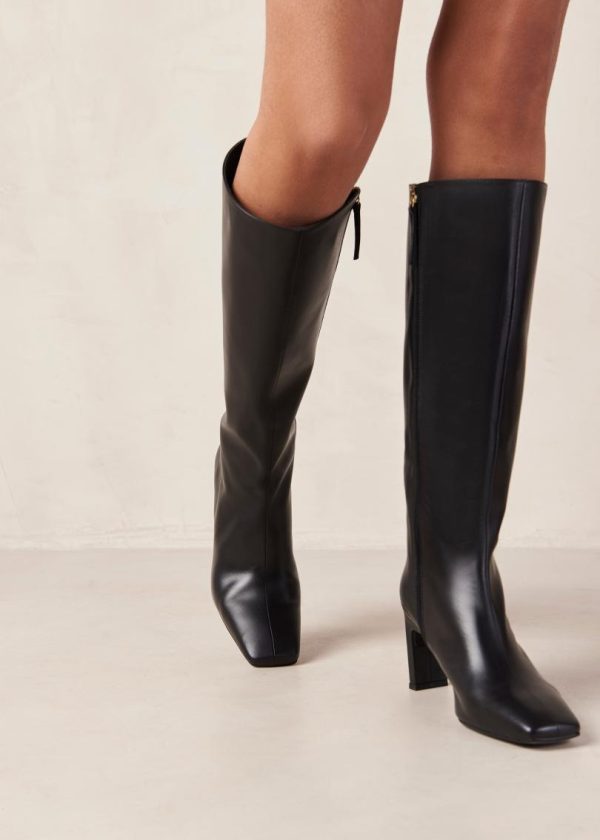ALOHAS Isobel Black Leather Knee-High Boots