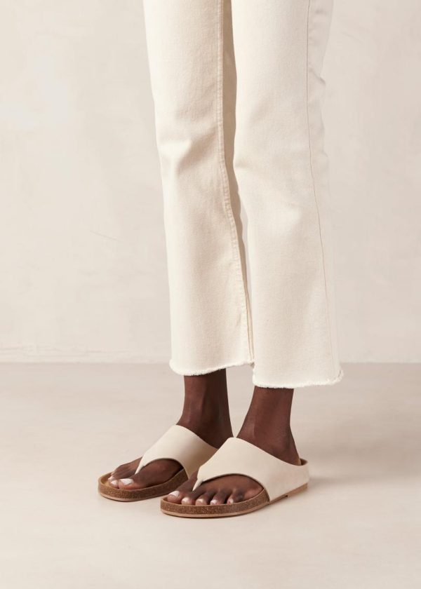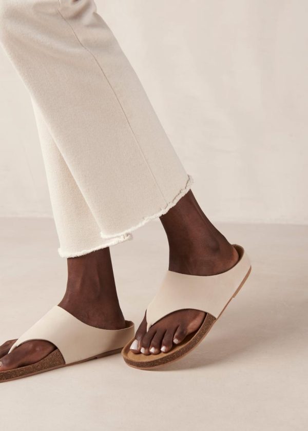Step into effortless style with the Ivy thong sandals, expertly crafted from premium cream nubuck leather featuring wide, comfortable straps and contoured molded insoles. Perfect for everything from daytime errands to casual evening outings, this minimalist design offers versatile all-day wearability. Experience exceptional comfort with our plush, supportive footbeds that cradle your feet through every step.