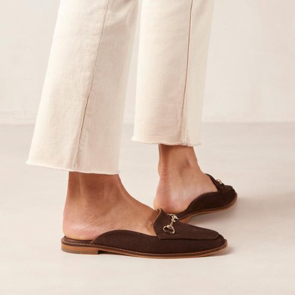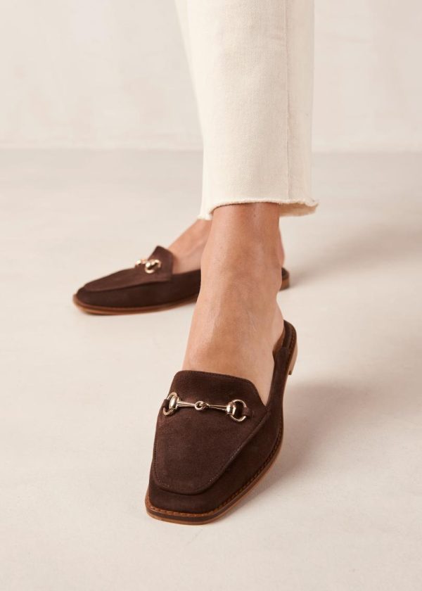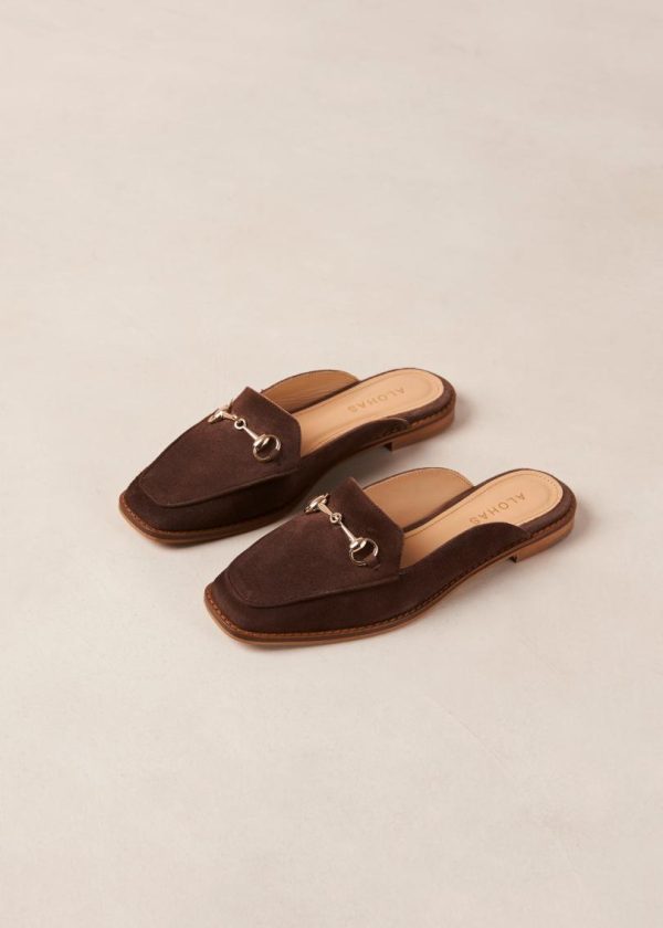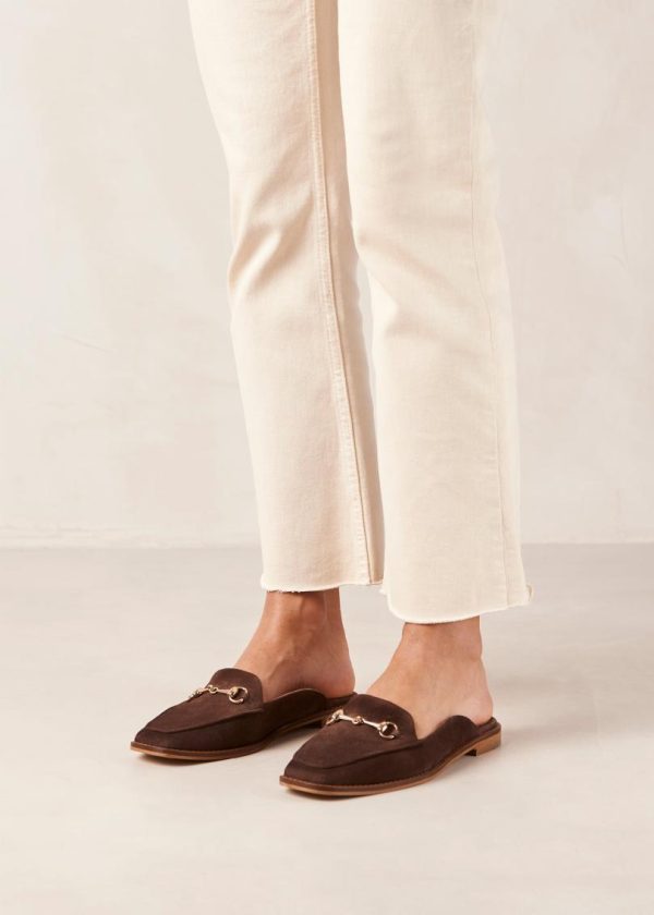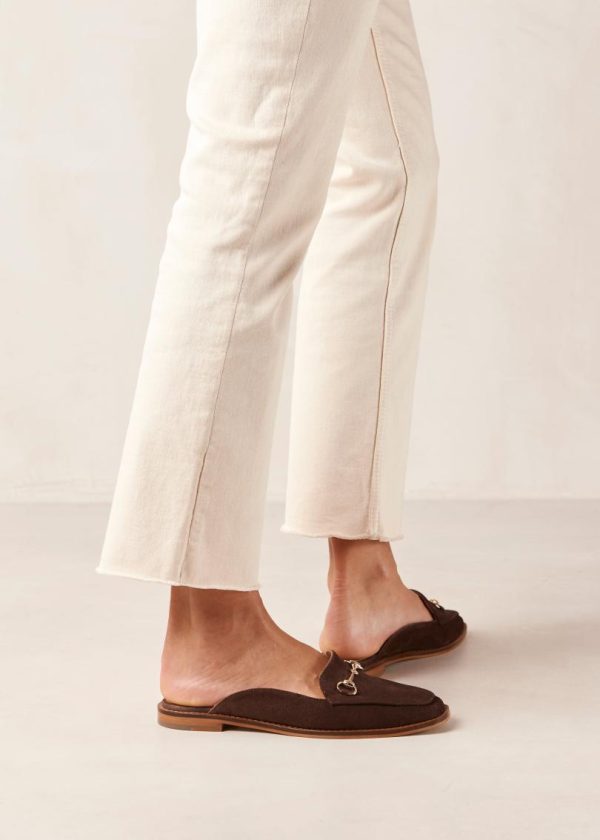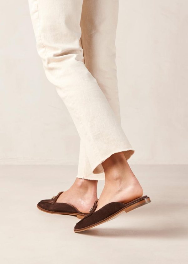 Dark brown suede loafer mules