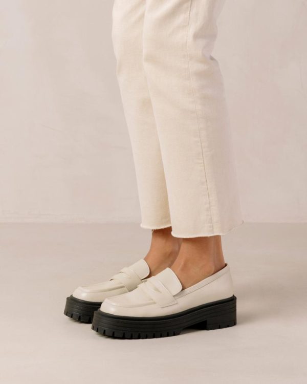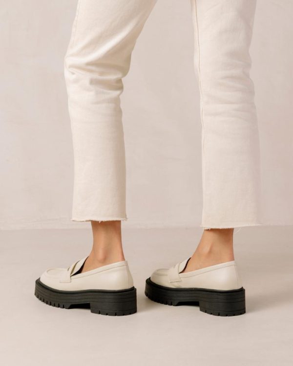 Introduce your wardrobe to the ultimate statement piece from our conscious vegan collection. The Mask loafer features crisp white faux leather construction with classic mocassin detailing, sophisticated penny-bar straps, and durable rubber track soles. Perfect for transitional seasons, these versatile loafers pair effortlessly with everything from your favorite skinny jeans to elegant tailored trousers.