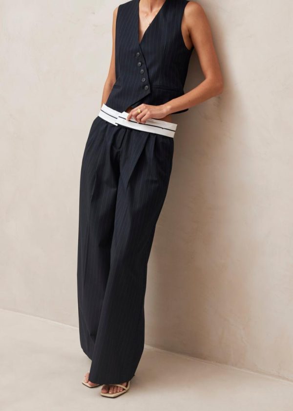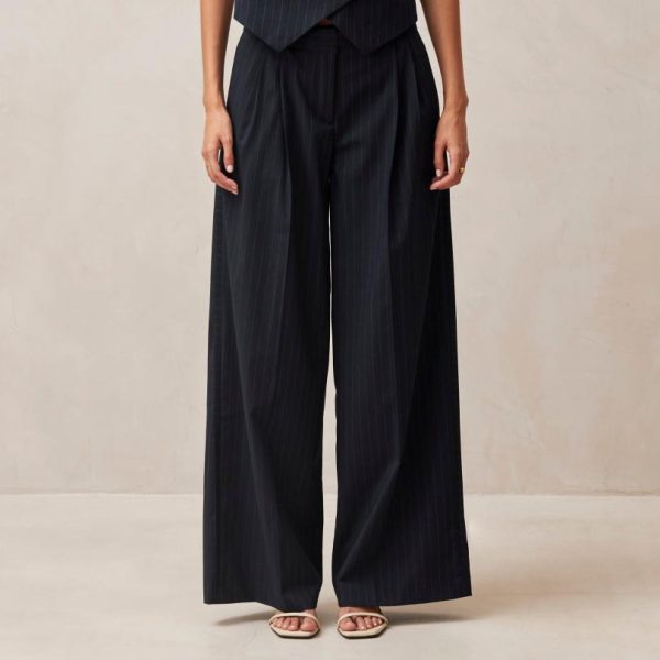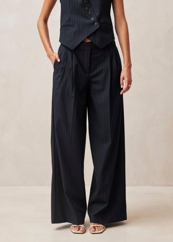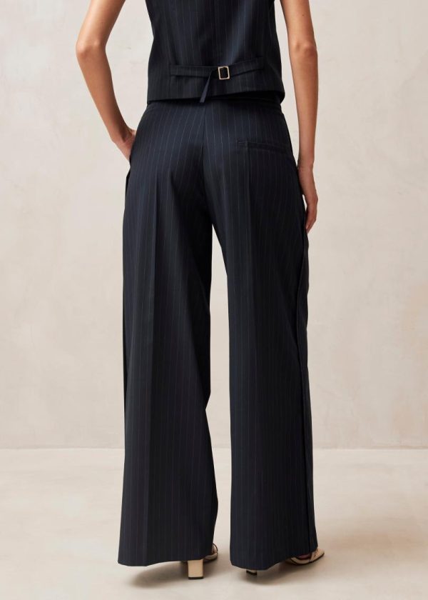 Navy wide-leg tailored pants with sophisticated style