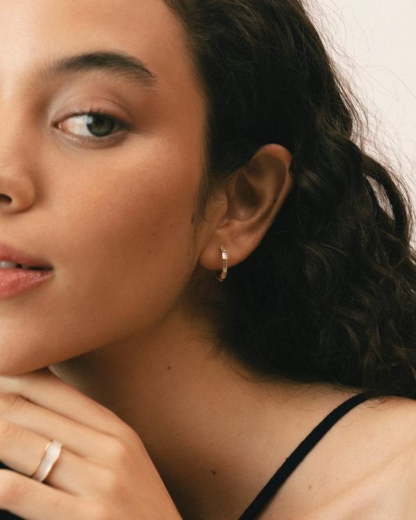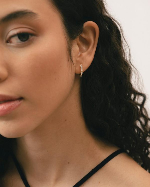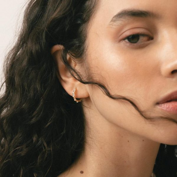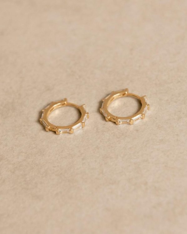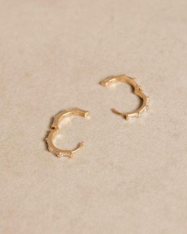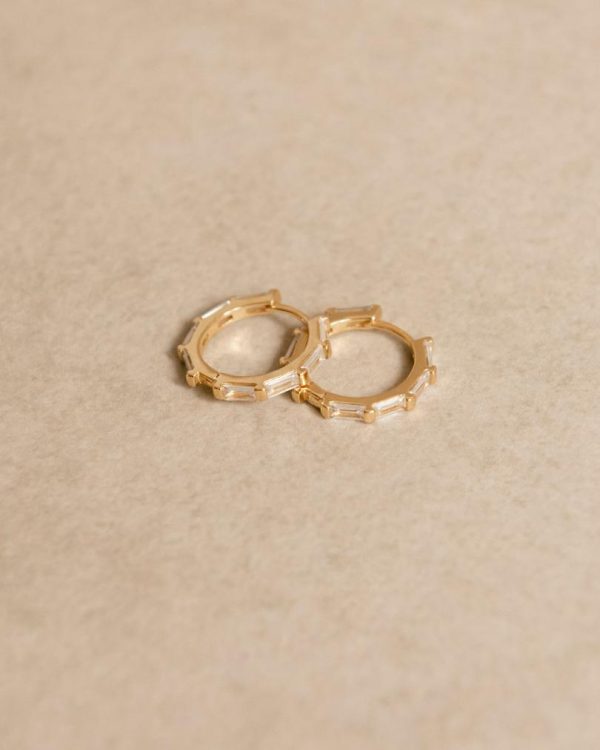 Elevate your everyday style with our Orlop earrings, featuring brilliant white gemstones that capture and reflect light for a radiant glow. Expertly crafted from gold plated sterling silver with a comfortable lobe-hugging design. Perfect for solo wear or layered with complementary hoops to match your personal style.