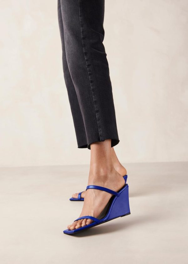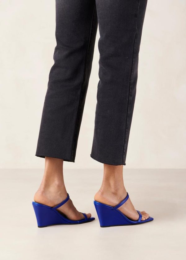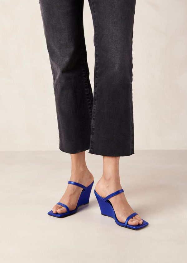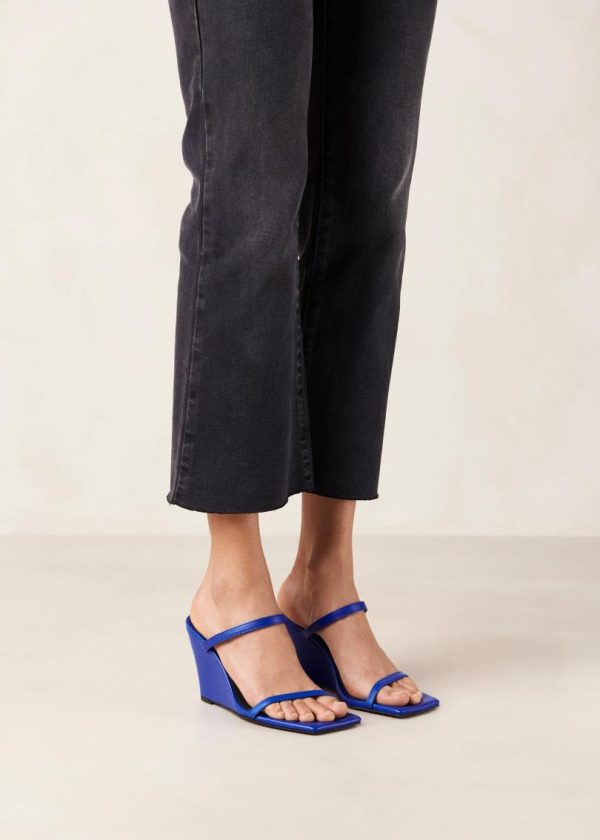 Elevate your casual style with these contemporary wedge mules. The Paixao features a minimalist slip-on design with a fashionable wedge heel that combines comfort and sophistication. Expertly crafted from premium blue leather, these mules showcase sleek squared toes and delicate, barely-there straps for a modern look. Slip into effortless style with the convenient open-back design that makes these perfect for on-the-go wear.