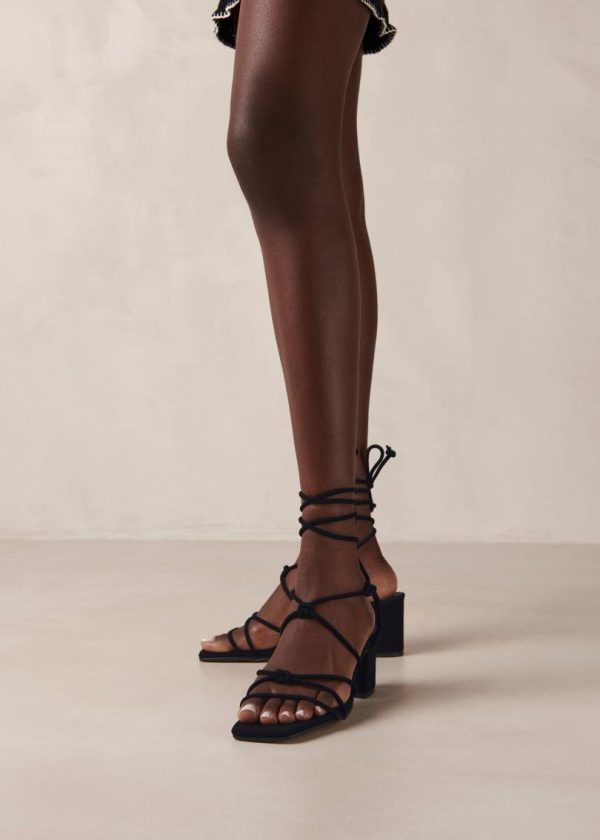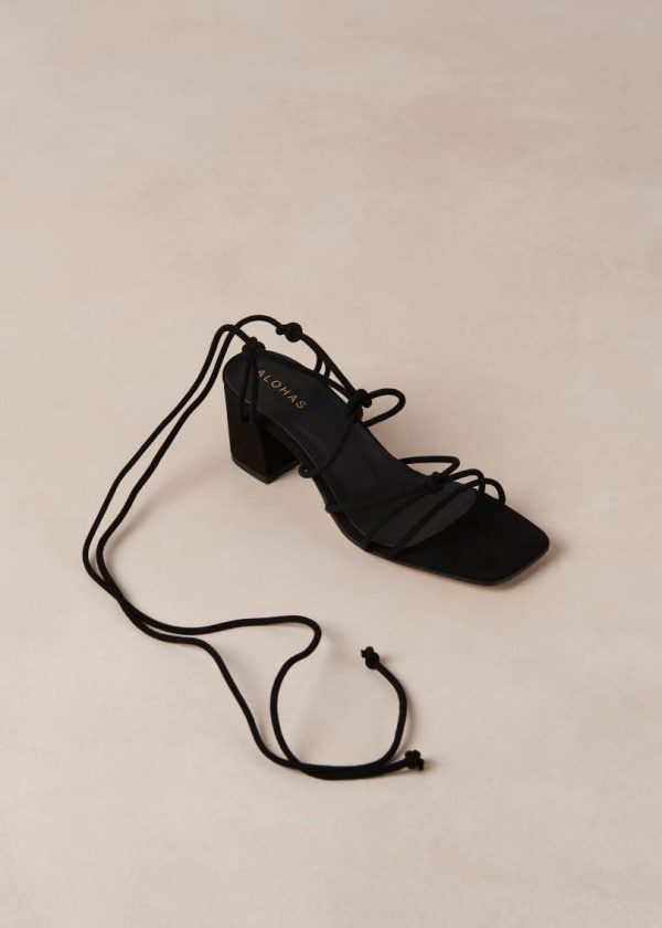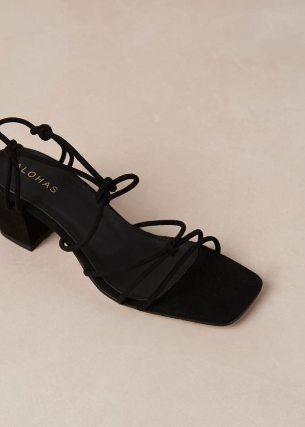 Sophisticated black suede strappy sandals with stable block heel