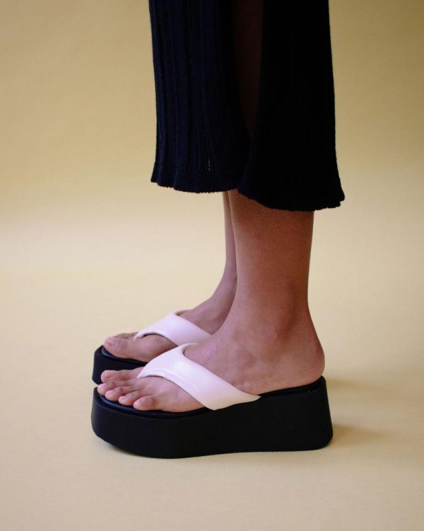 Experience the ultimate 90s revival with these stunning platform sandals! Expertly crafted from premium white vegan leather, these elevated flip-flops deliver both style and comfort with their impressive height. The V-shaped padded straps provide exceptional support while the lightweight foam outsoles make them surprisingly easy to wear all day. Perfect for creating that nostalgic summer look when paired with your favorite slip dress or casual weekend outfits.