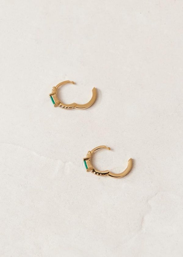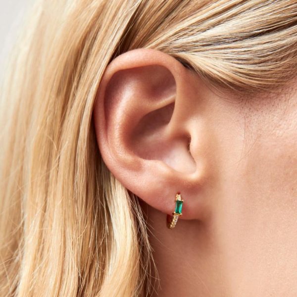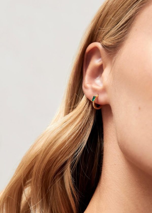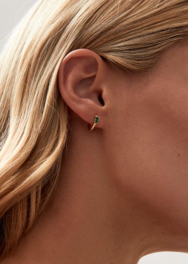 Make a stunning statement with these captivating hoop earrings. The ALOHAS Plato collection introduces these exquisite gold-plated hoops featuring brilliant crystals and a striking green baguette gemstone centerpiece. Perfect for mixing and matching to create your personalized jewelry collection.