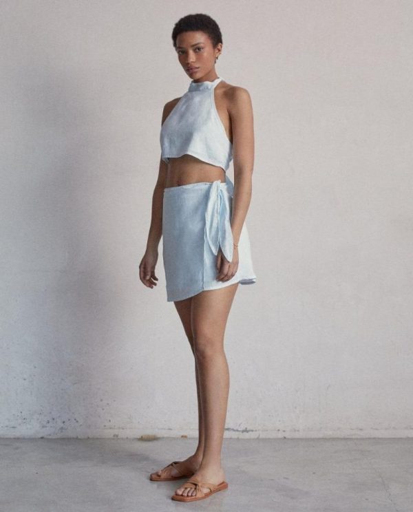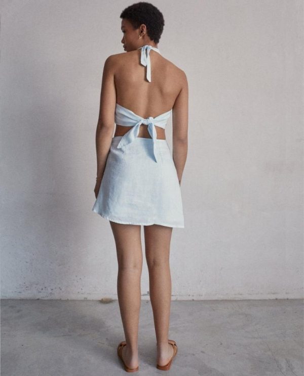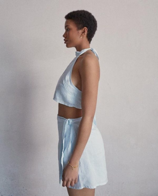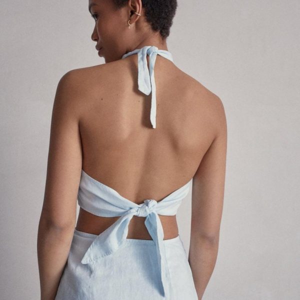 Discover our Poetry Baby Blue Linen Top, the perfect summer essential for your warm-weather wardrobe. This beautifully crafted halter crop top features premium linen construction that delivers exceptional comfort and breathability during hot days. The sophisticated design showcases a flattering neckline with an adjustable tie-back closure for your ideal custom fit. Style it effortlessly with high-waisted shorts or a flowing skirt for that chic, put-together look. Add this versatile, timeless piece to your collection today.