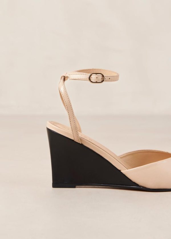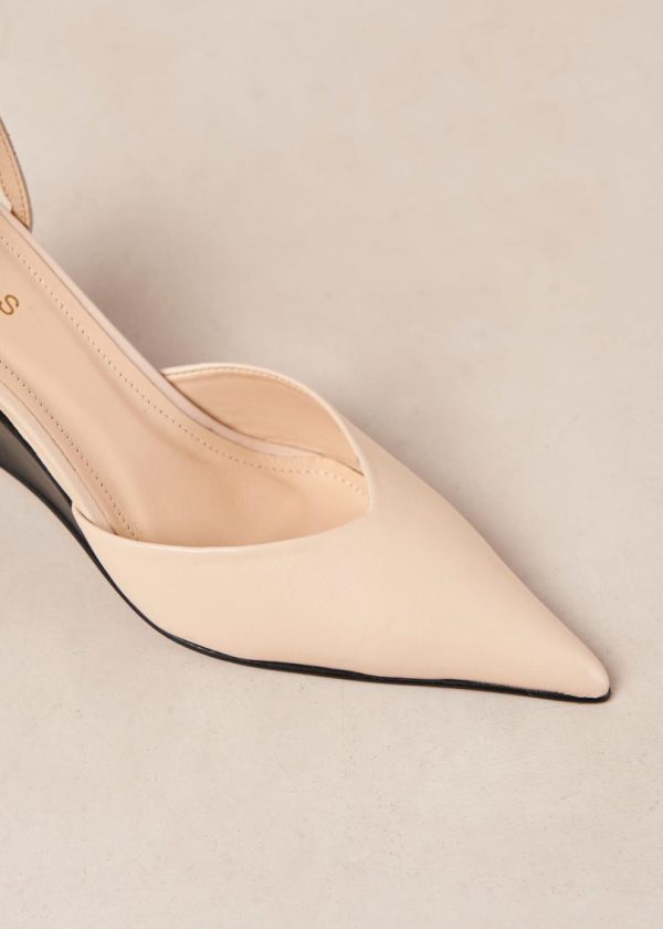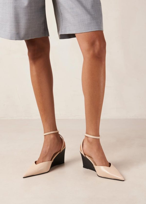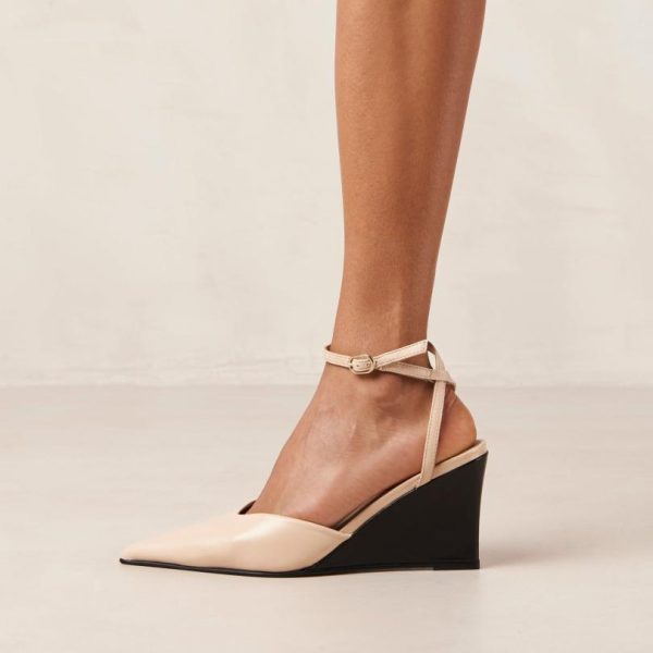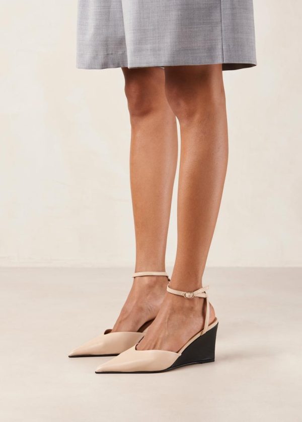 Elegant cream leather wedge pumps with sophisticated pointed toe design