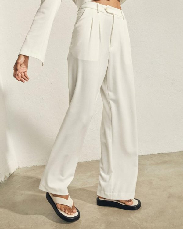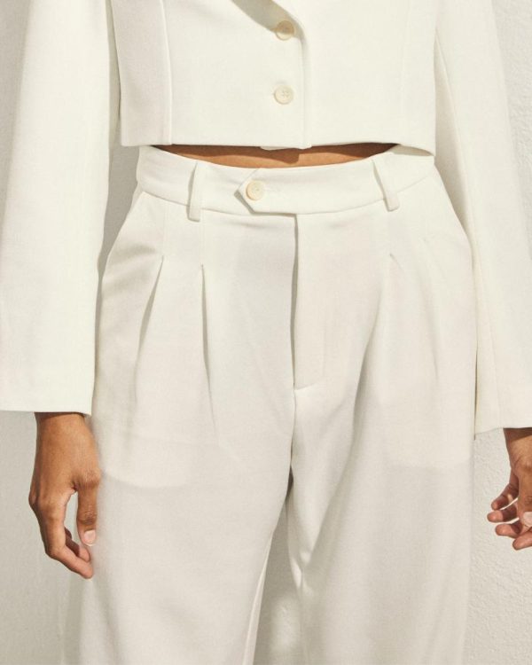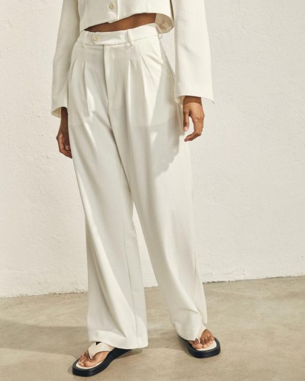 Elevate Your Style with Cream-Colored High-Waisted Wide-Leg Trousers