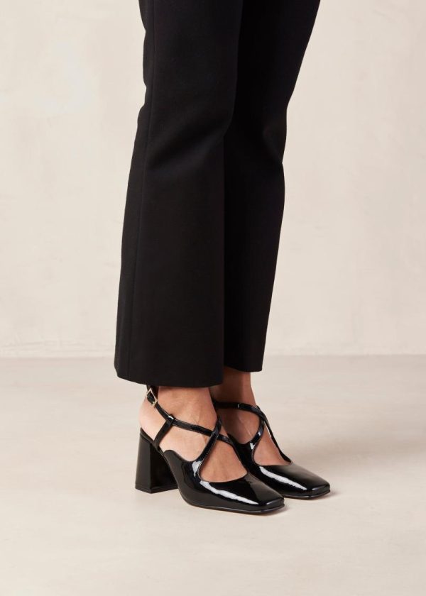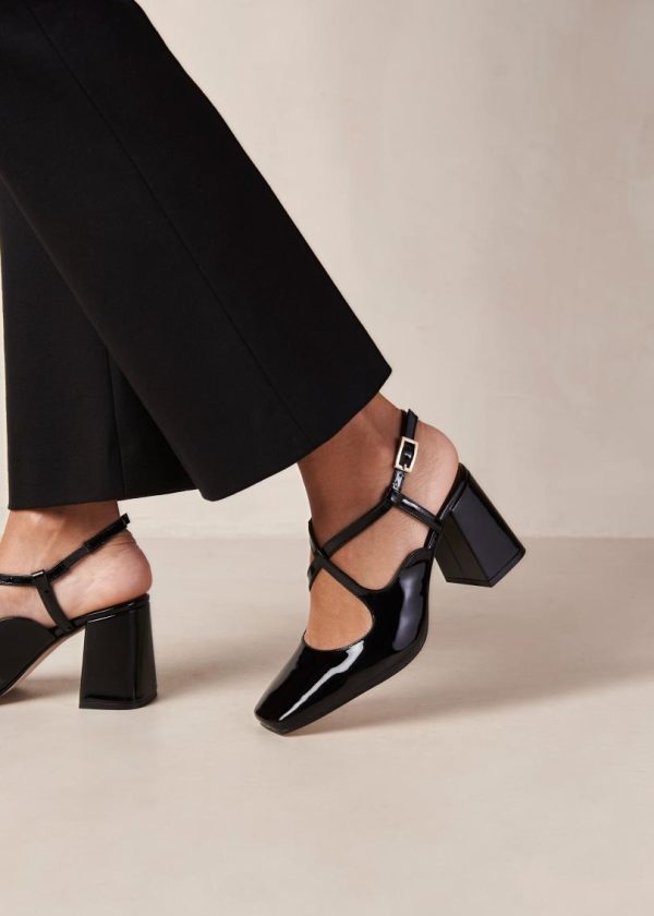 Meet your new favorite party heels featuring brilliant shine and elegant slingback straps. Crafted from eye-catching patent leather, the Reggie black pumps command attention with contemporary square toes and dramatic flared heels. These versatile heels transition effortlessly from dinner dates to festive celebrations, making them the perfect choice for any special occasion in your schedule.