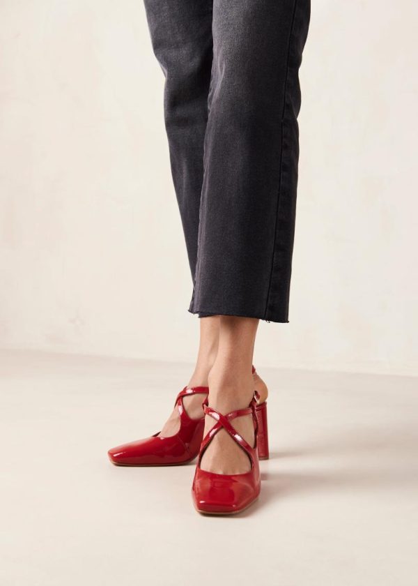 Step into the spotlight with these eye-catching Reggie pumps. Expertly crafted from premium patent leather, these statement heels feature a modern block heel design and secure criss-cross ankle straps for both style and stability. Perfect for elevating your evening wardrobe, these versatile pumps transition seamlessly from sophisticated dinners to romantic date nights and festive celebrations.