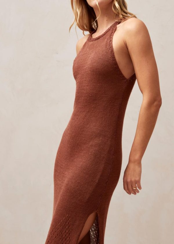 Perfect for your coastal escapes, the Sorrento is a beautifully crafted brown knit dress made from premium linen. Featuring a flattering bodycon silhouette that flows into an elegant maxi hem with intricate openwork detailing and a functional slit for easy movement. Whether you’re exploring new destinations or enjoying local adventures, this versatile dress deserves a prime spot in your travel wardrobe.