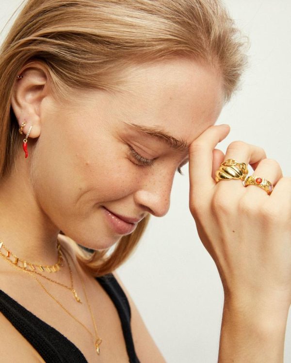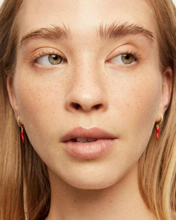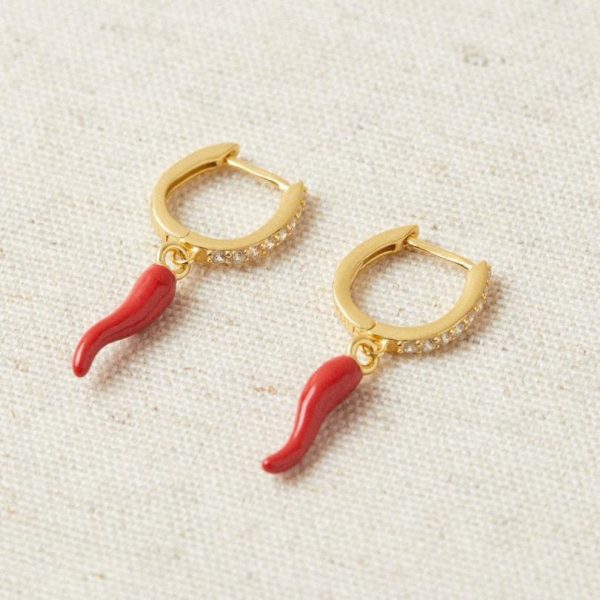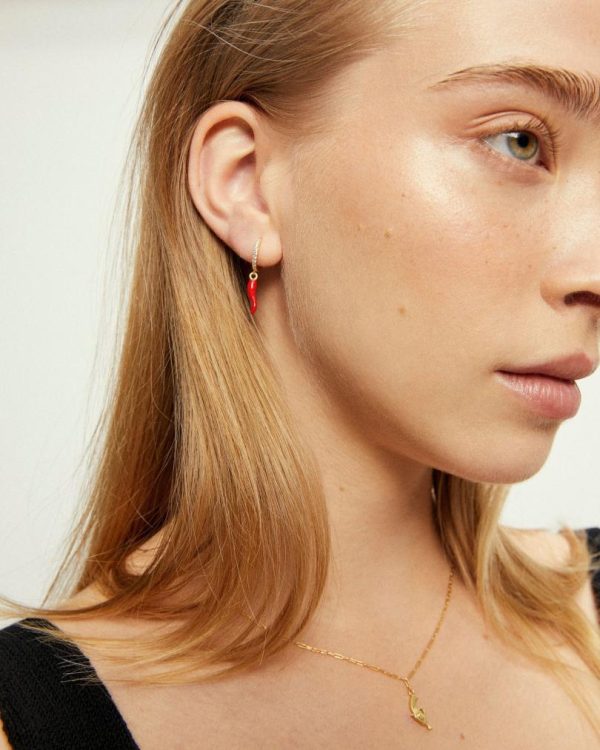 Gold plated hoop earrings featuring vibrant chili pepper charm