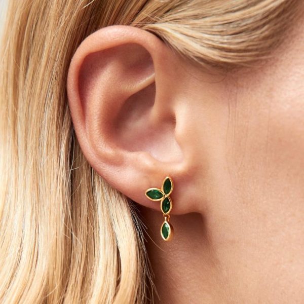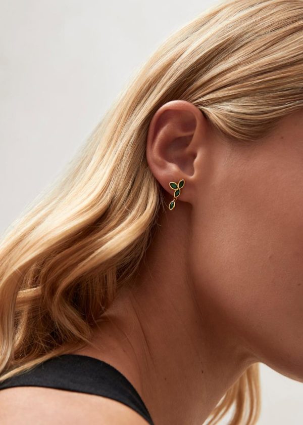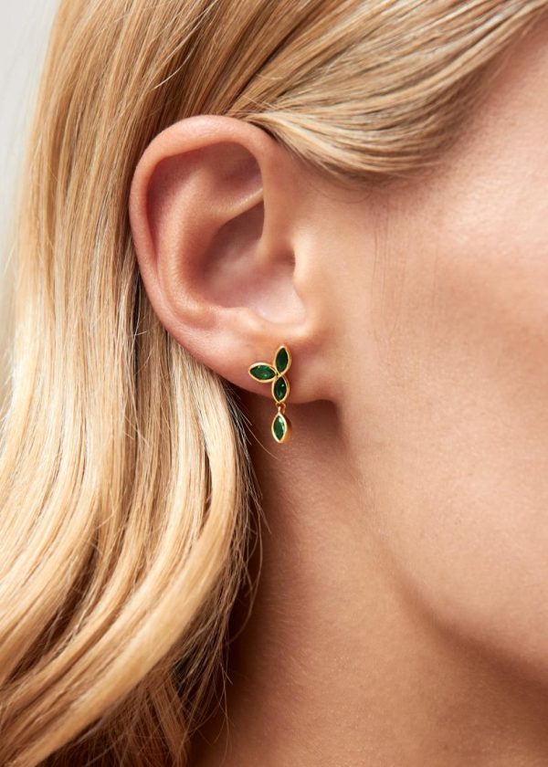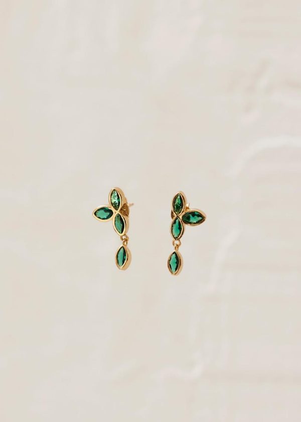 Perfect for spring and summer styling. Expertly crafted from premium gold-plated silver, these stunning sunflower drop earrings feature brilliant green gemstones precision-cut into delicate petal shapes. Notice how the lower crystal gracefully dangles from the shimmering posts – we suggest wearing your hair up to let these earrings capture and reflect light with every movement, creating eye-catching sparkle.