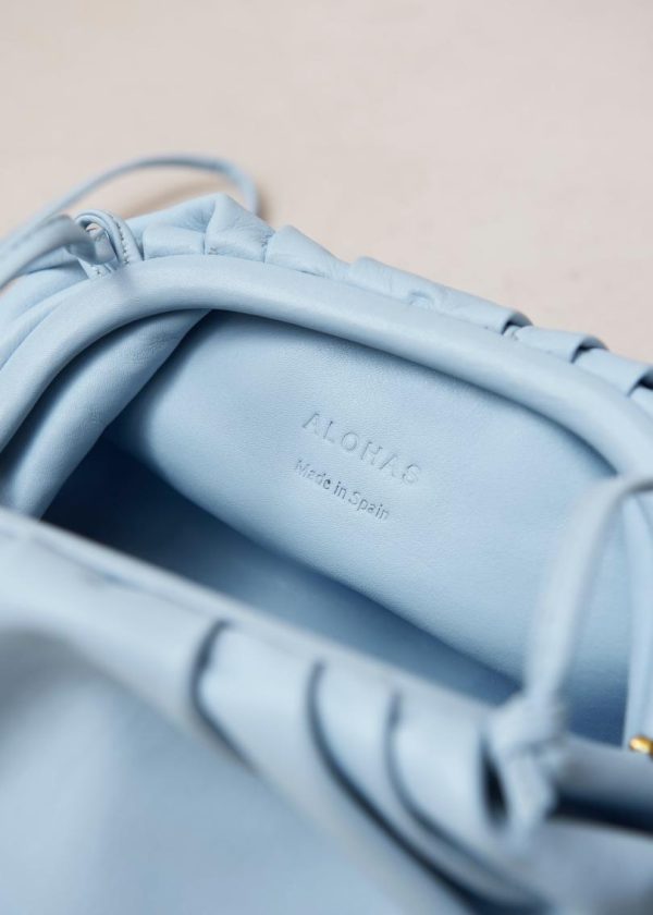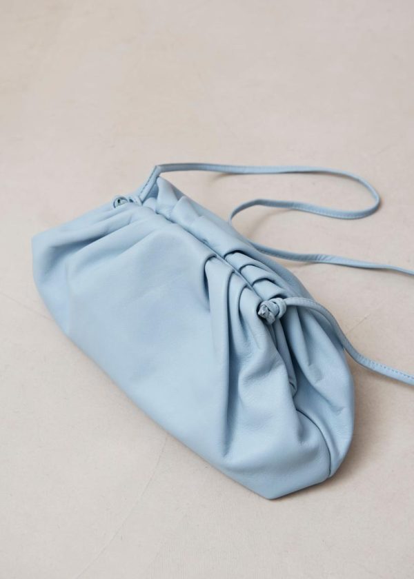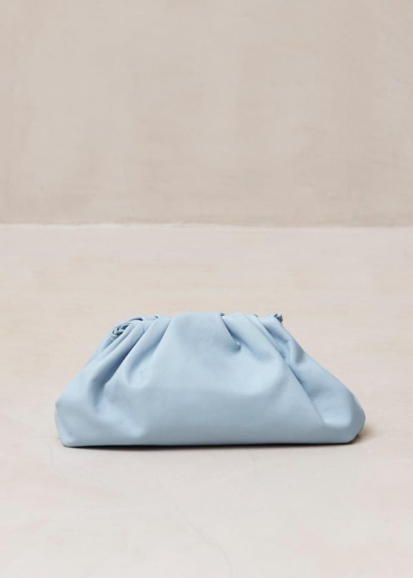 Meet your new everyday essential. Expertly crafted from premium baby blue leather, The D features a sophisticated pillow-style design that combines effortless style with practical functionality. Its gracefully slouchy silhouette creates beautiful natural folds that form a cloud-inspired shape. Enjoy versatile carrying options with the removable leather strap for shoulder wear or carry it as a chic handheld pouch.