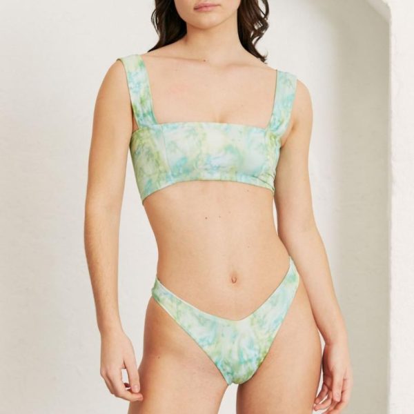 Discover our sustainable green recycled nylon bikini top, expertly crafted to deliver both style and comfort for your beach adventures. Constructed with premium materials, this top offers exceptional fit and durability for all your swimming activities. The Square Acquarella Green makes a stunning addition to your sustainable swimwear collection. Shop now and elevate your summer wardrobe with conscious style!
