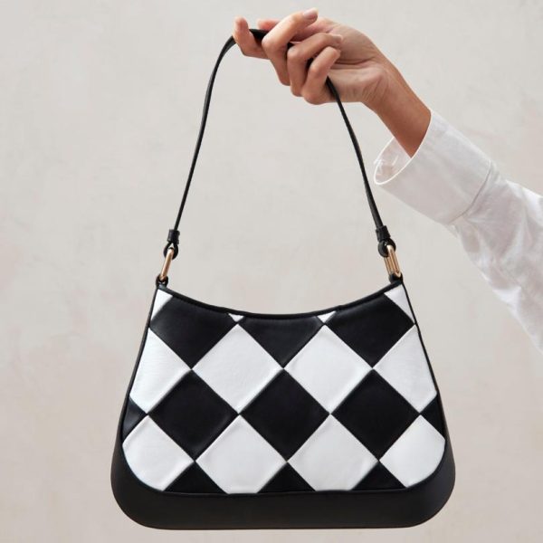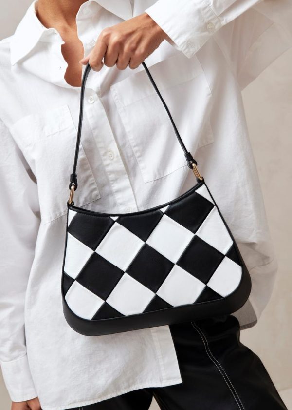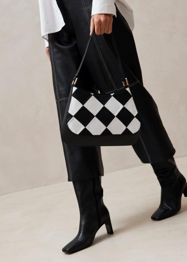 Women Bags | ALOHAS The C Scacchi – Black And White Leather Handbag