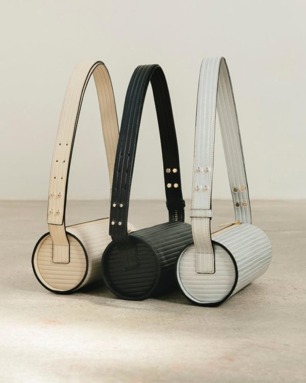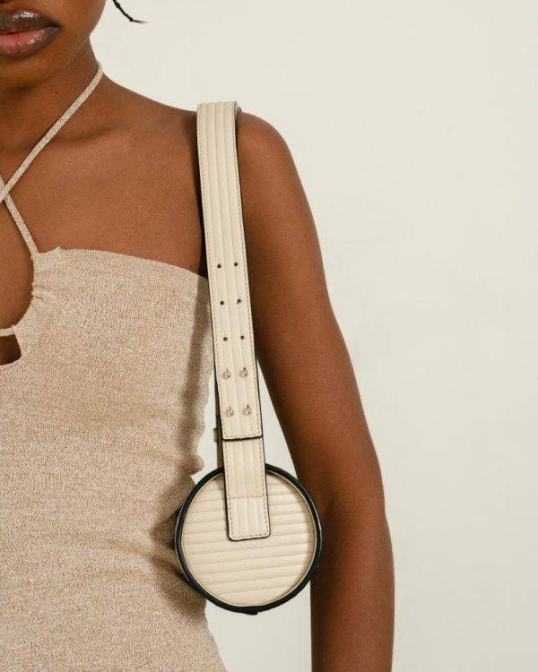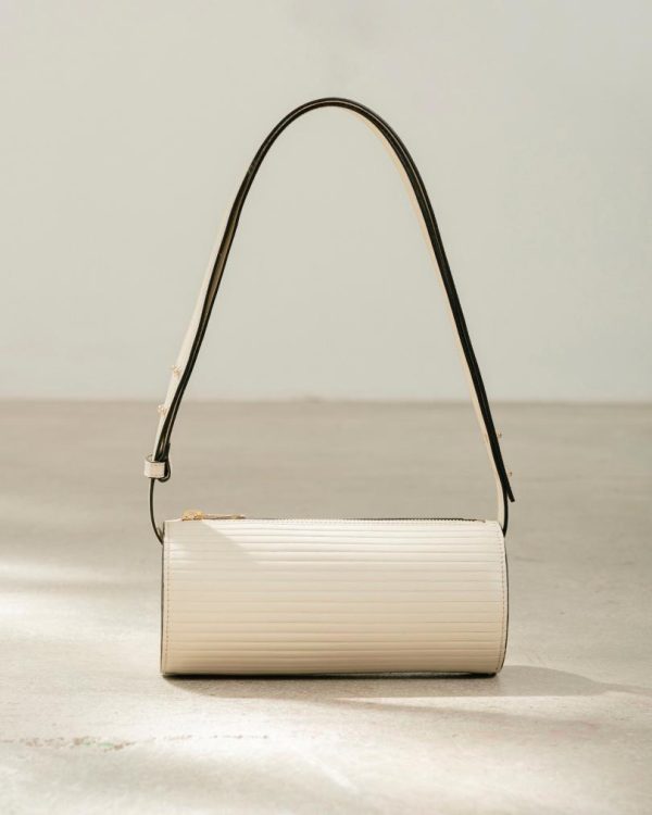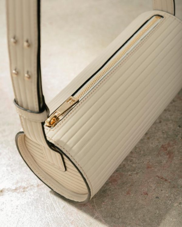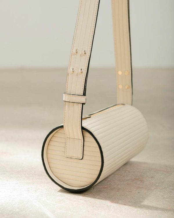 White ribbed-effect leather cylinder shoulder bag