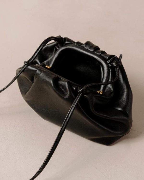 A minimalist’s dream. Crafted from butter-soft black leather, the Mini D is our pillow-style pouch bag. Its slouchy silhouette features delicate foldings to create a voluminous cloudlike shape. Carry yours in-hand or slung it over the shoulder thanks to its removable leather strap.