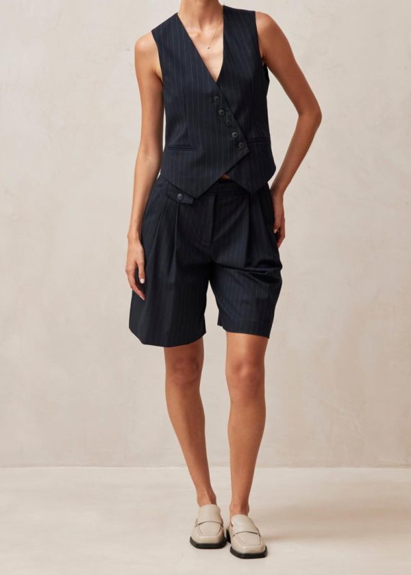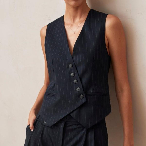 With darts along the front and a buckle-fastenig back tab, the Poppy vest draws influence from traditional menswear tailoring. On top of that, it’s patterned in classic pinstripes and accented with welt pockets and off-centre buttons. Layer it under a blazer, on top of a t-shirt or button it over bare skin – there’s a million ways to style it.
