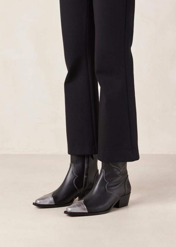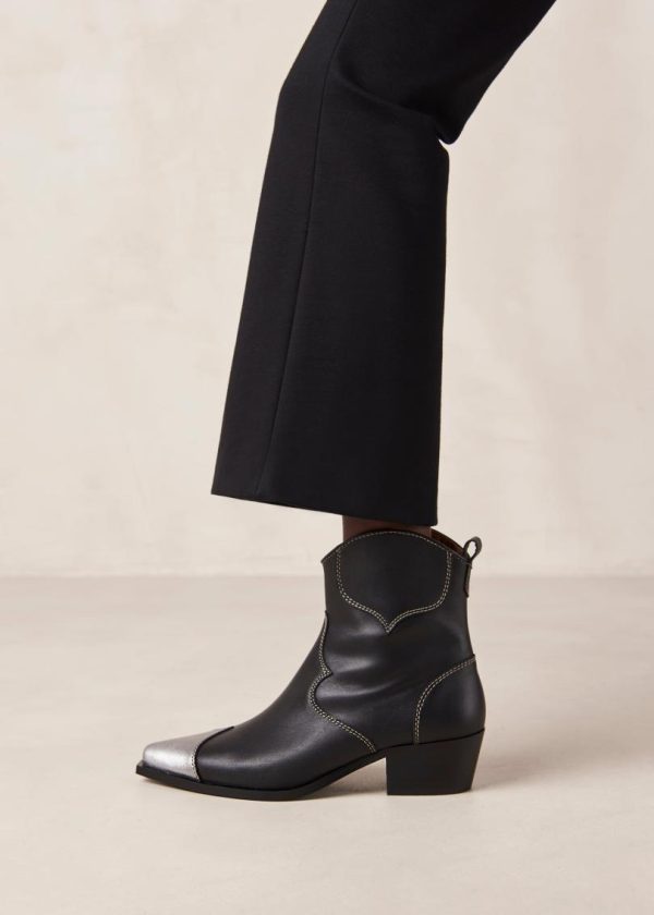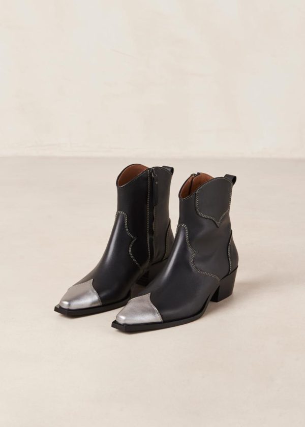 Black and silver leather cowboy ankle boots