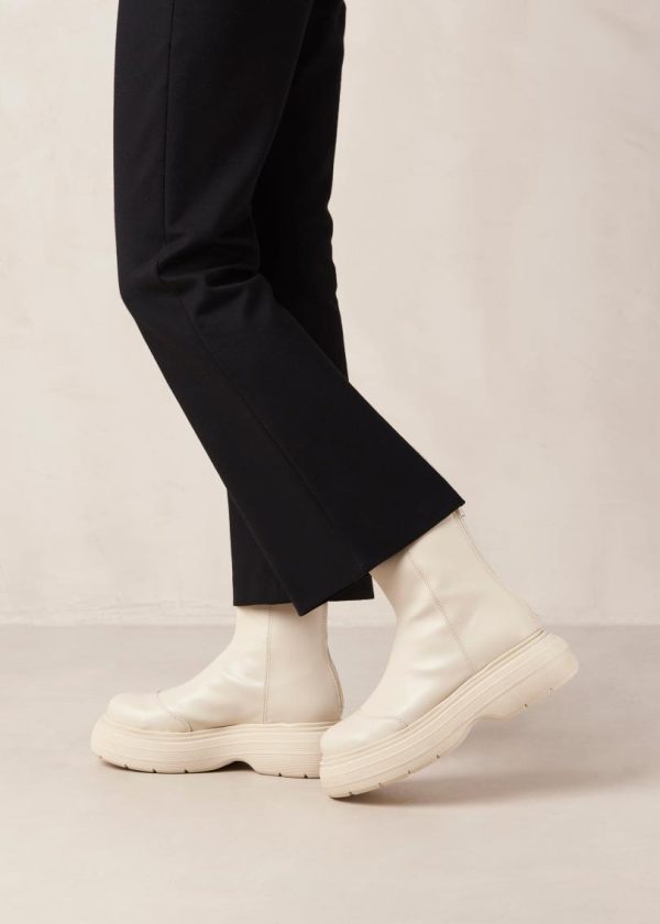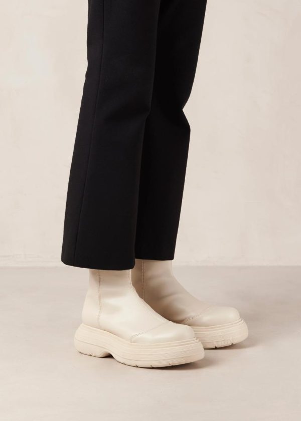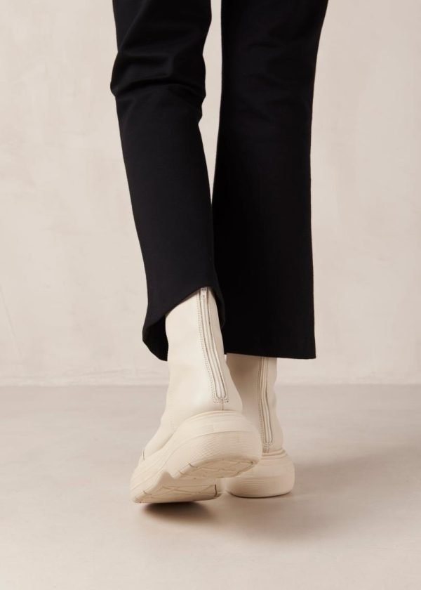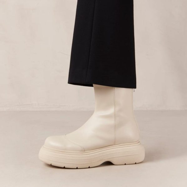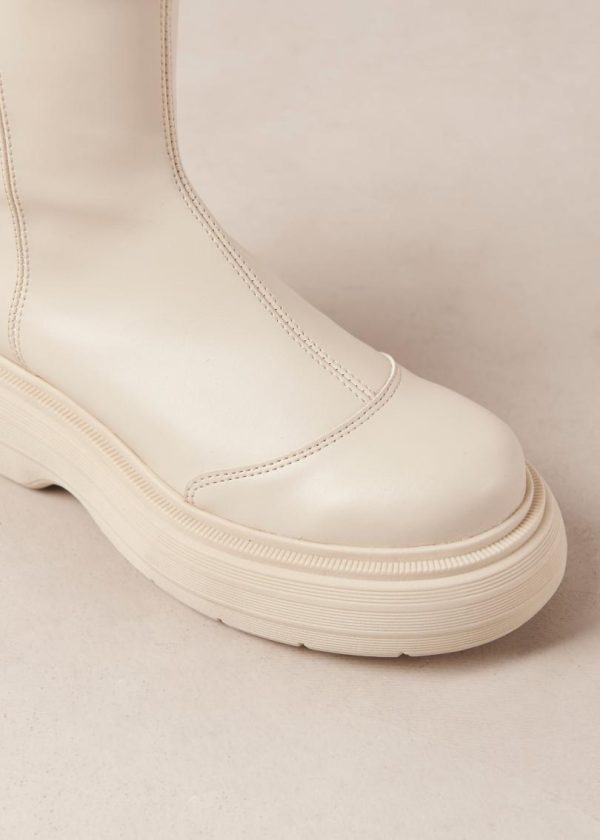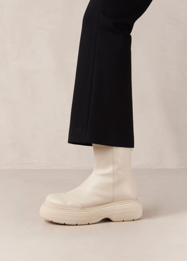 White vegan leather boots with rounded soles