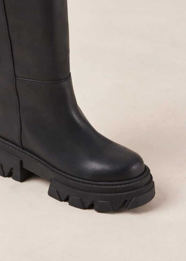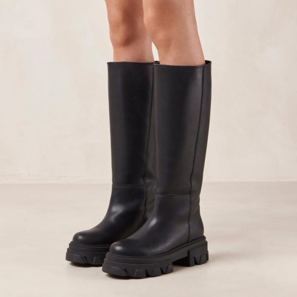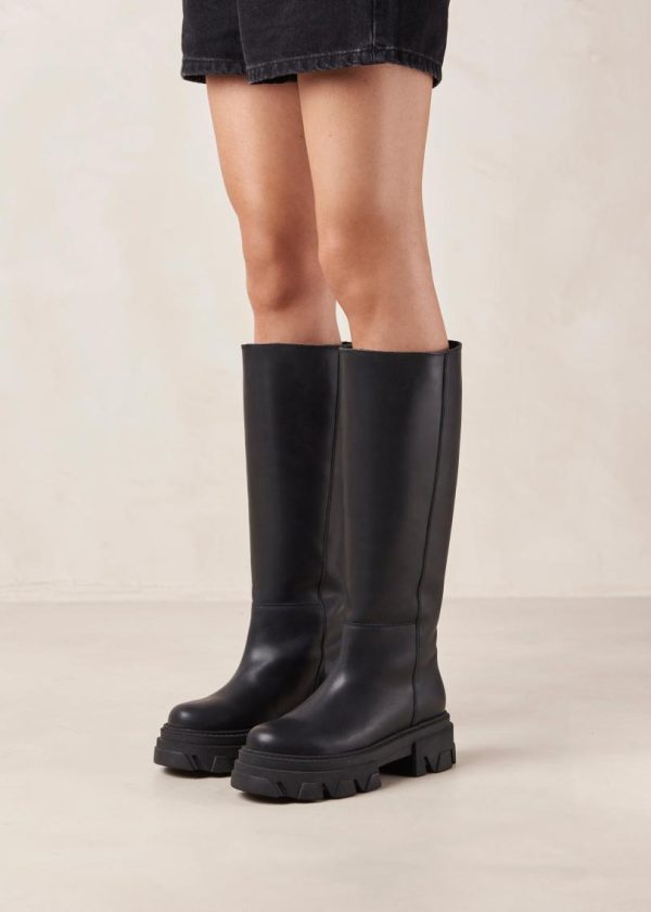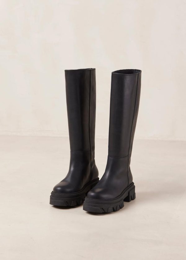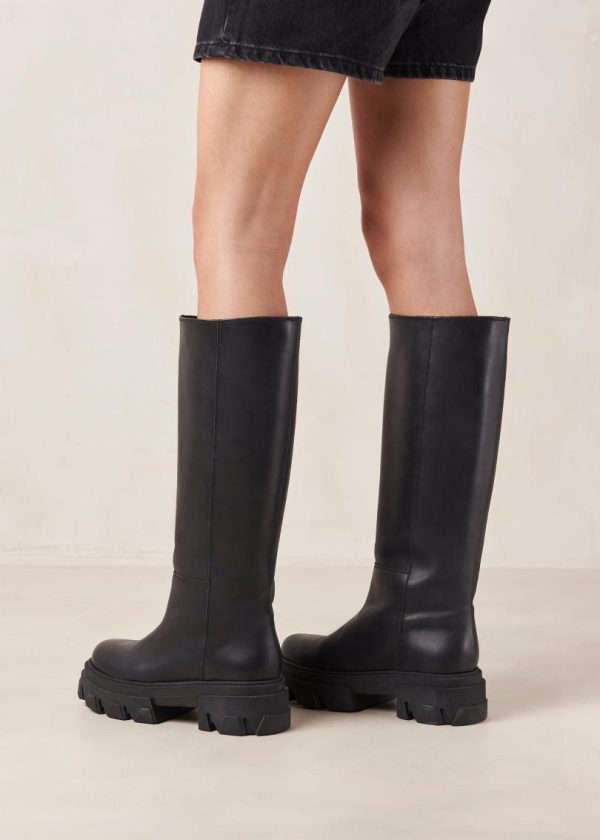 Black leather knee-high boots with platform soles