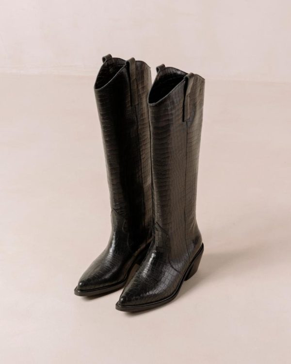 Black croc leather cowboy boots