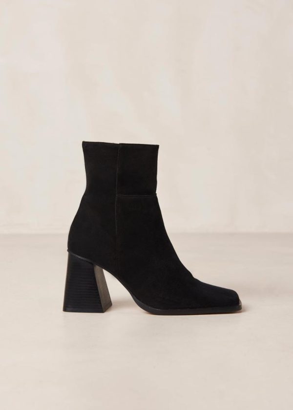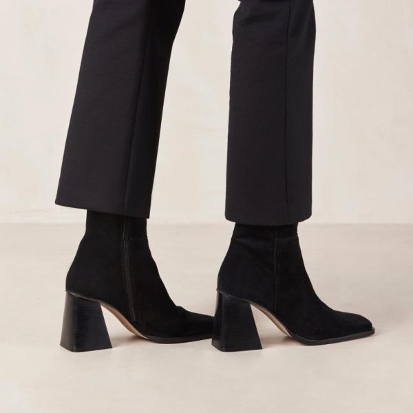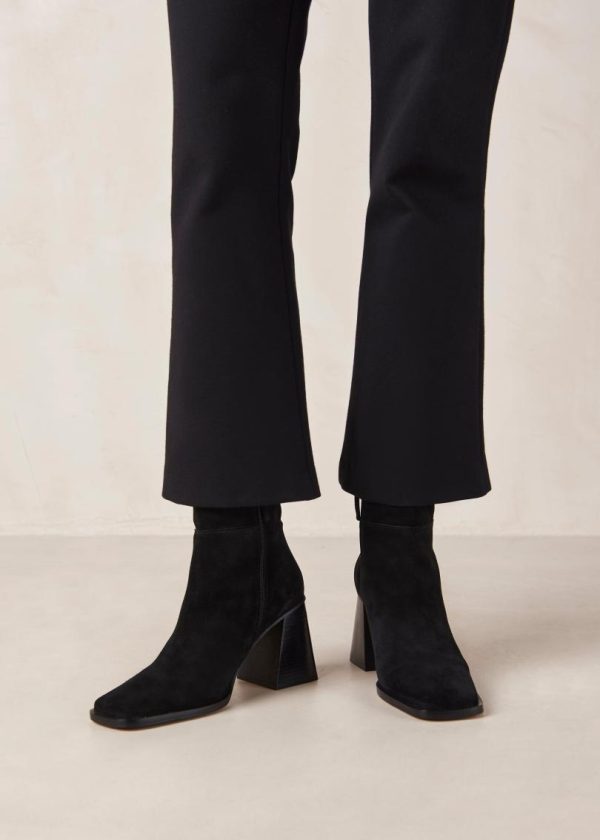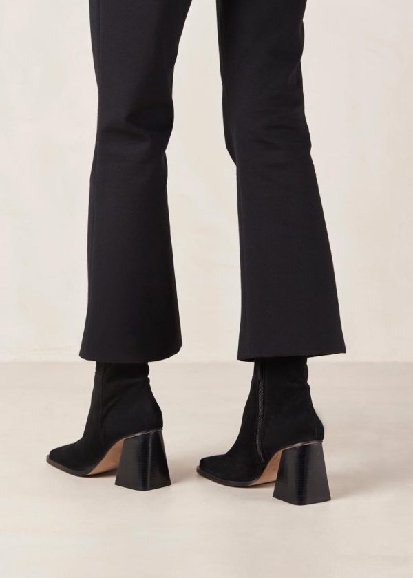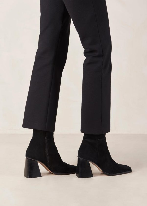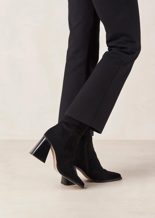 Black suede ankle boots with block heel
