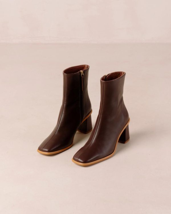 Brown leather ankle boots with block heel