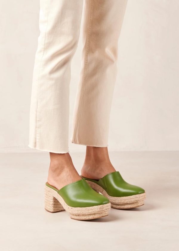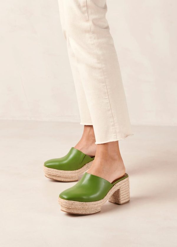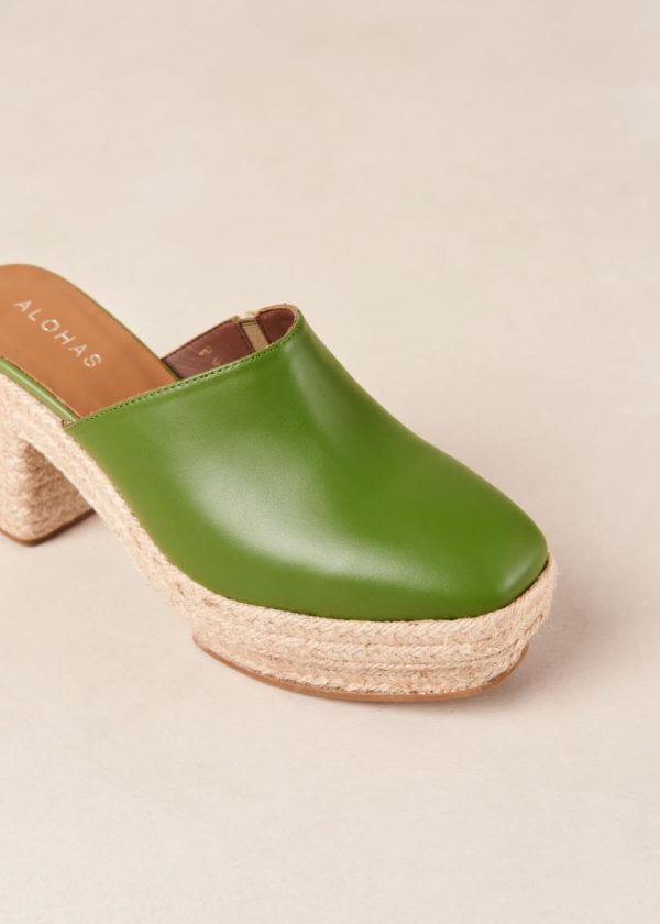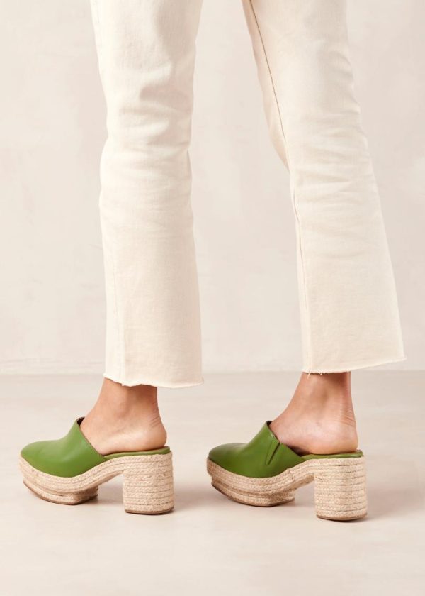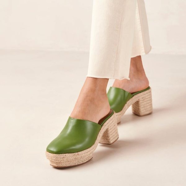 A twist on tradition – Pico is our espadrille-inspired clog made for clomping along the seaside promenade and down the city streets. Unlike the classic 60s style, these green sabot sandals feature towering raffia heels balanced by stacked front platforms. The closed-toe uppers are crafted from supple leather and so are the insoles. Lean into the boho-chic aesthetic by pairing yours with floaty dresses and romantic skirts.
