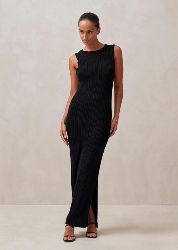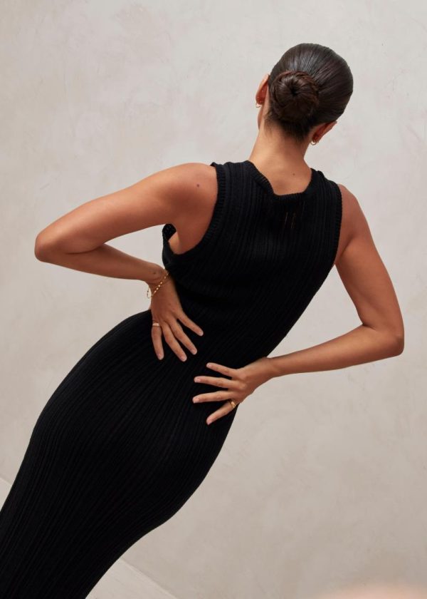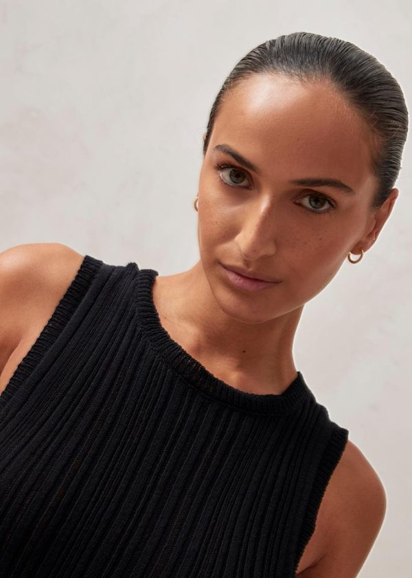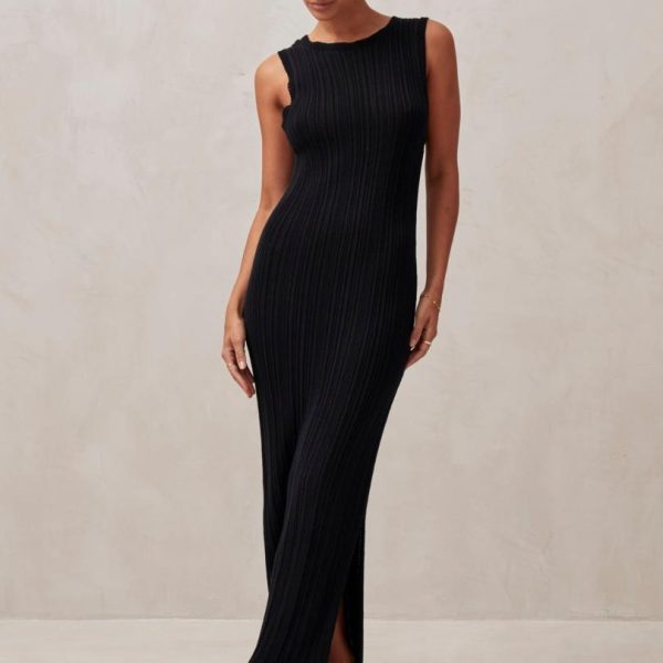 Cut for a sleeveless silhouette from black ribbed-knit, Breezy makes a versatile option for your evening outings. While the high neckline feels so demure, there’s something about the split hem saying “Which way to the dance floor?”. It is very slim-fitting, but has some stretch to it for ease of movement. Style yours with bright lip and statement jewelry before heading out out with the girls.