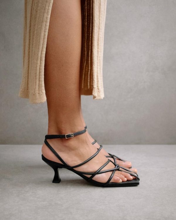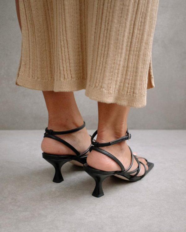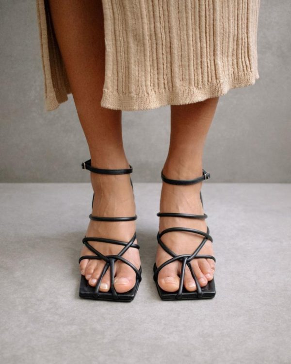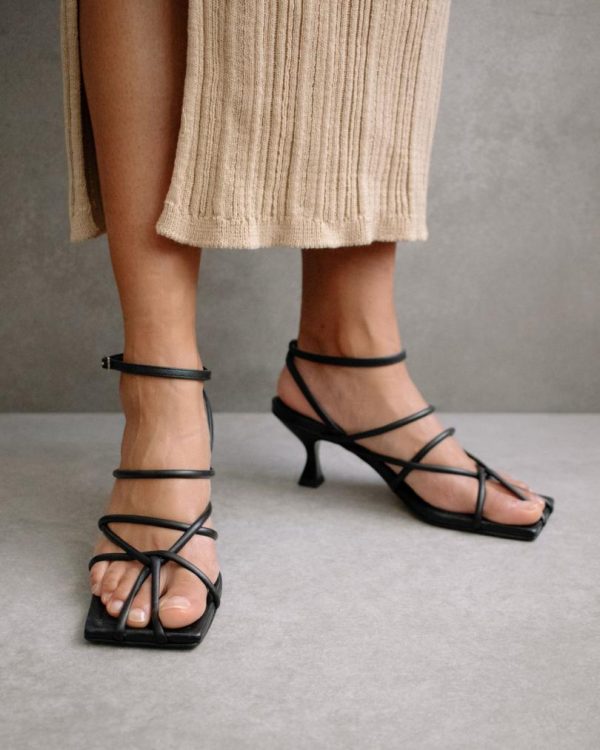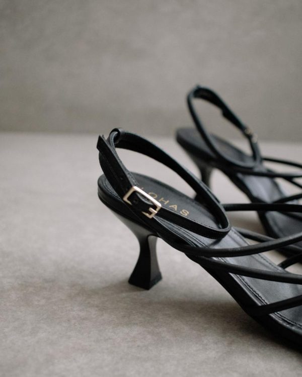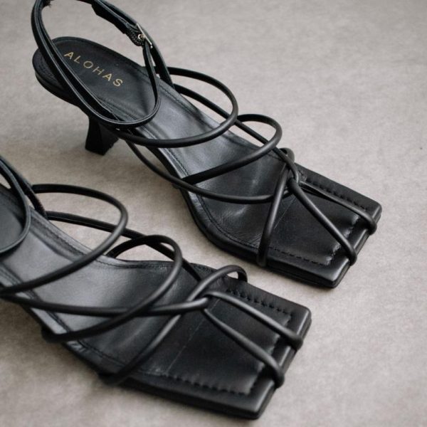 Step up your shoe game with the Ginza Black Sandal from Alohas. These stylish sandals feature a sleek square toe and trendy kitten heels, making them the perfect addition to any outfit. Made with high-quality materials, these sandals are both comfortable and durable. Elevate your look with the Ginza Black Sandal today!