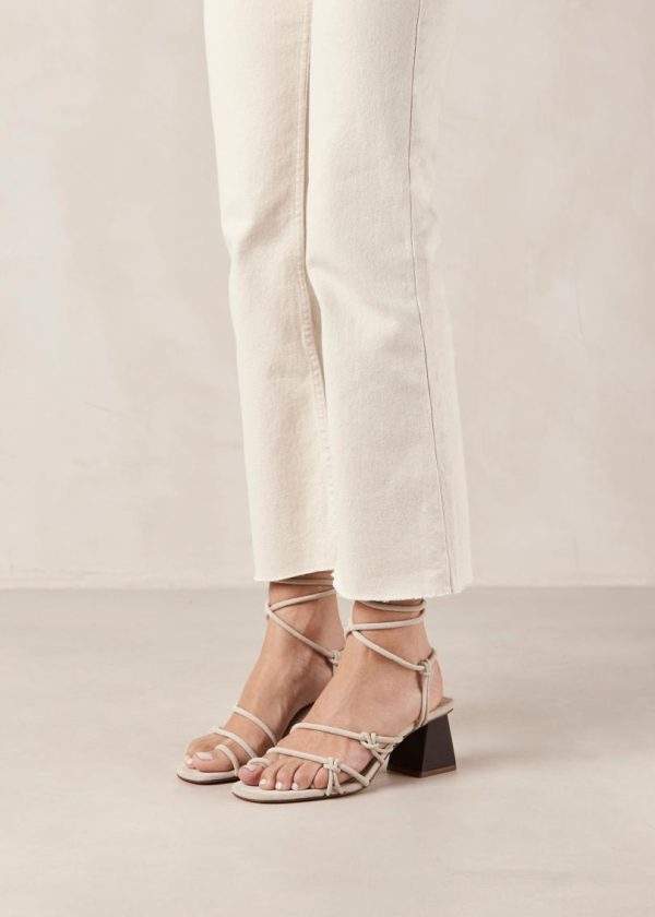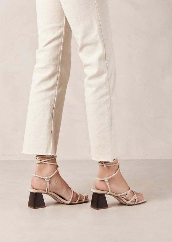 Strappy sandals are never an oldie but always a Goldie! Crafted from white suede to an intricately knotted, lace-up silhouette, these gracious summer shoes are set on flared block heels, ready to elevate any look of your choice. Play with the long ankle ties to create your personalized style and fit.