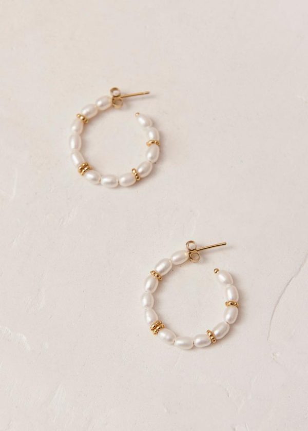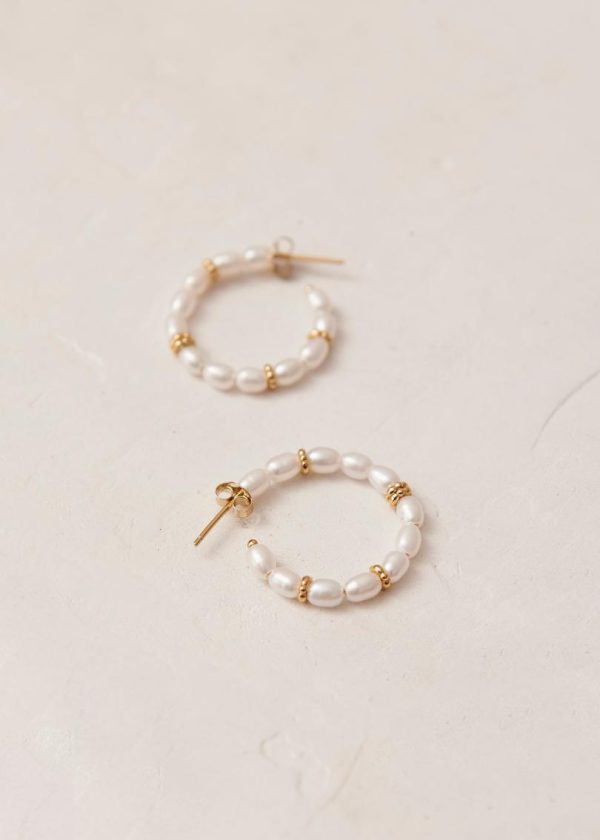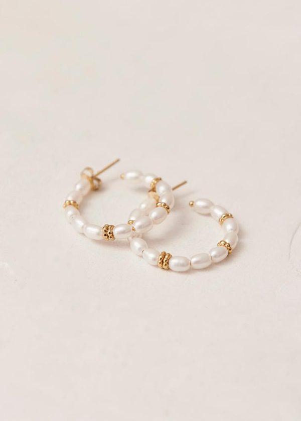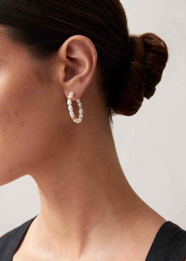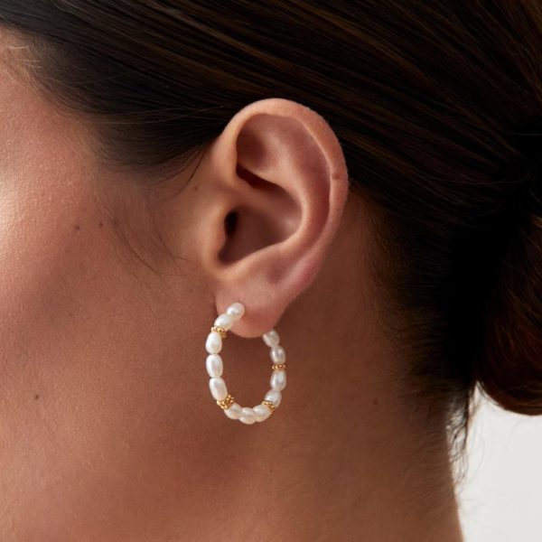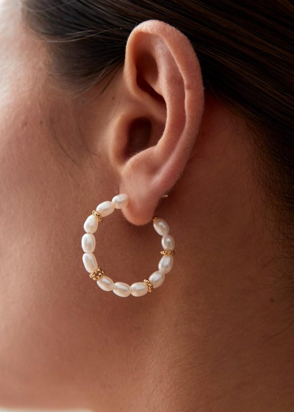 Pearls before breakfast. The Addie is a pair of earrings strung with gold beads and faux pearls along the hoop. Wear yours from morning to night – it doesn’t take much to look glamorous all the time.