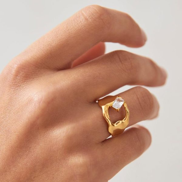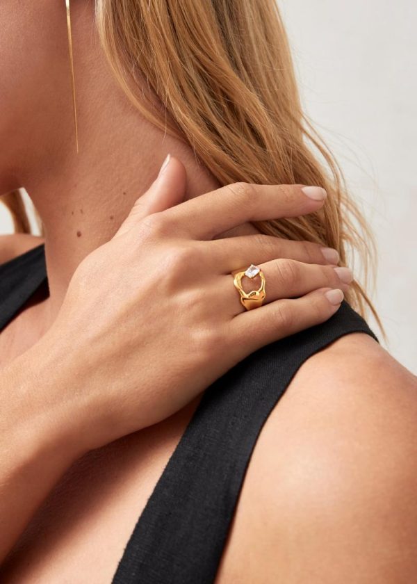 A lesson in embracing all sorts of imperfections – no wonder our Cortex ring is so special. Designed with a free-flowing shape, this wide-band sparkler is set with a baguette-cut crystal for extra shine. In case you love a maximalist moment, stacking with other styles is highly encouraged.