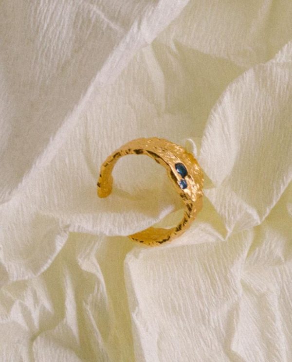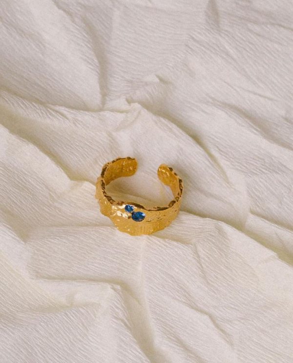 Hammered gold ring with blue crystals