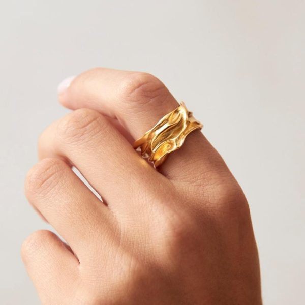 With a bold, sculptural shape, the Fluorite ring speaks for itself. It’s cast from gold-plated silver and artfully modeled for added texture. Play with proportions and stack yours with thinner bands.